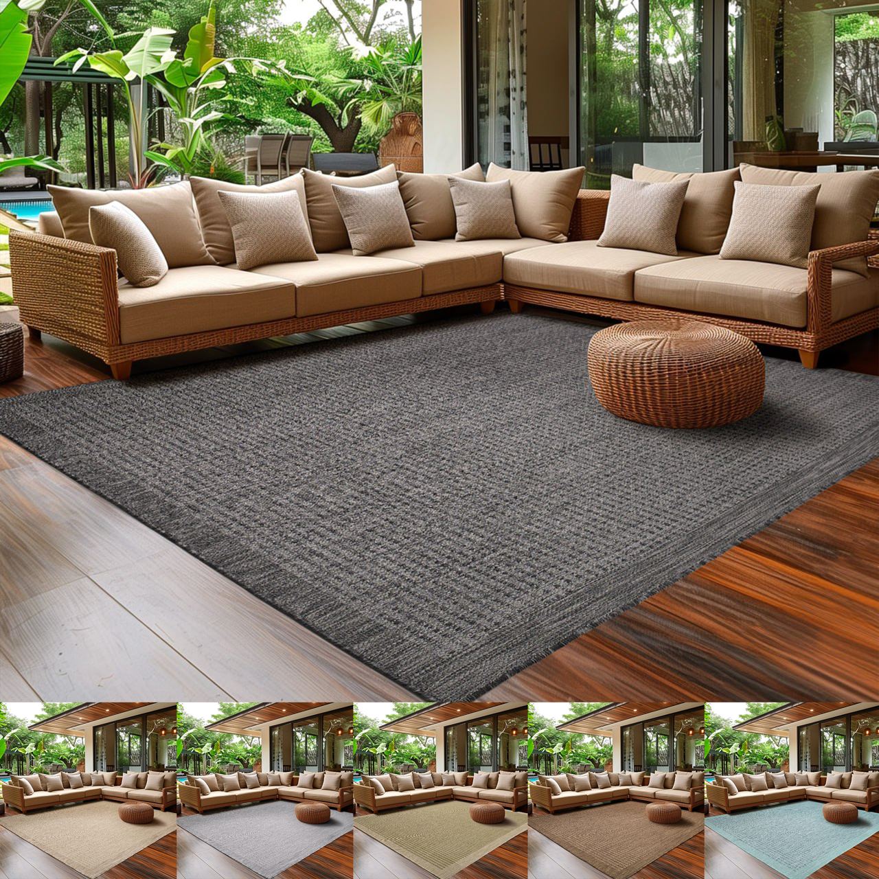 Verleihen Sie Ihrem Außenbereich einen Hauch von Eleganz und Funktionalität mit unserem Outdoor-Teppich, ideal für Terrassen, Balkone und Gärten. Dieser hochwertige Teppich ist aus einem langlebigen Flachgewebe gefertigt, das nicht nur attraktiv aussieht, sondern auch extrem widerstandsfähig gegen Wettereinflüsse ist. Der Teppich imitiert das Aussehen von Sisal, bietet jedoch dank seiner synthetischen Materialien eine viel höhere Wetterfestigkeit und ist somit eine hervorragende Wahl für Outdoor-Bereiche.
