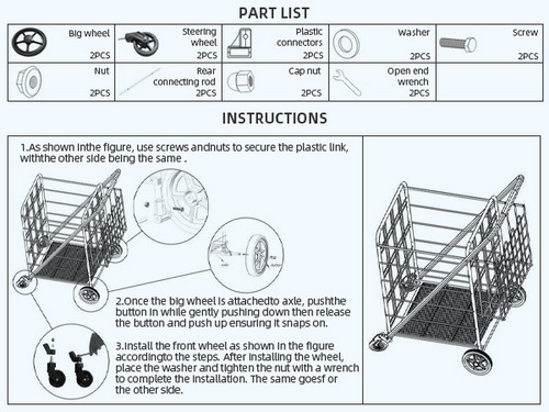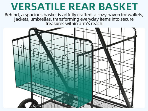 Smooth Rolling Wheels: Equipped with durable and smooth-rolling wheels, this cart glides effortlessly on various surfaces, making it easy to maneuver through crowded stores, sidewalks, or even uneven terrain. The wheels provide stability and ensure a smooth shopping experience.