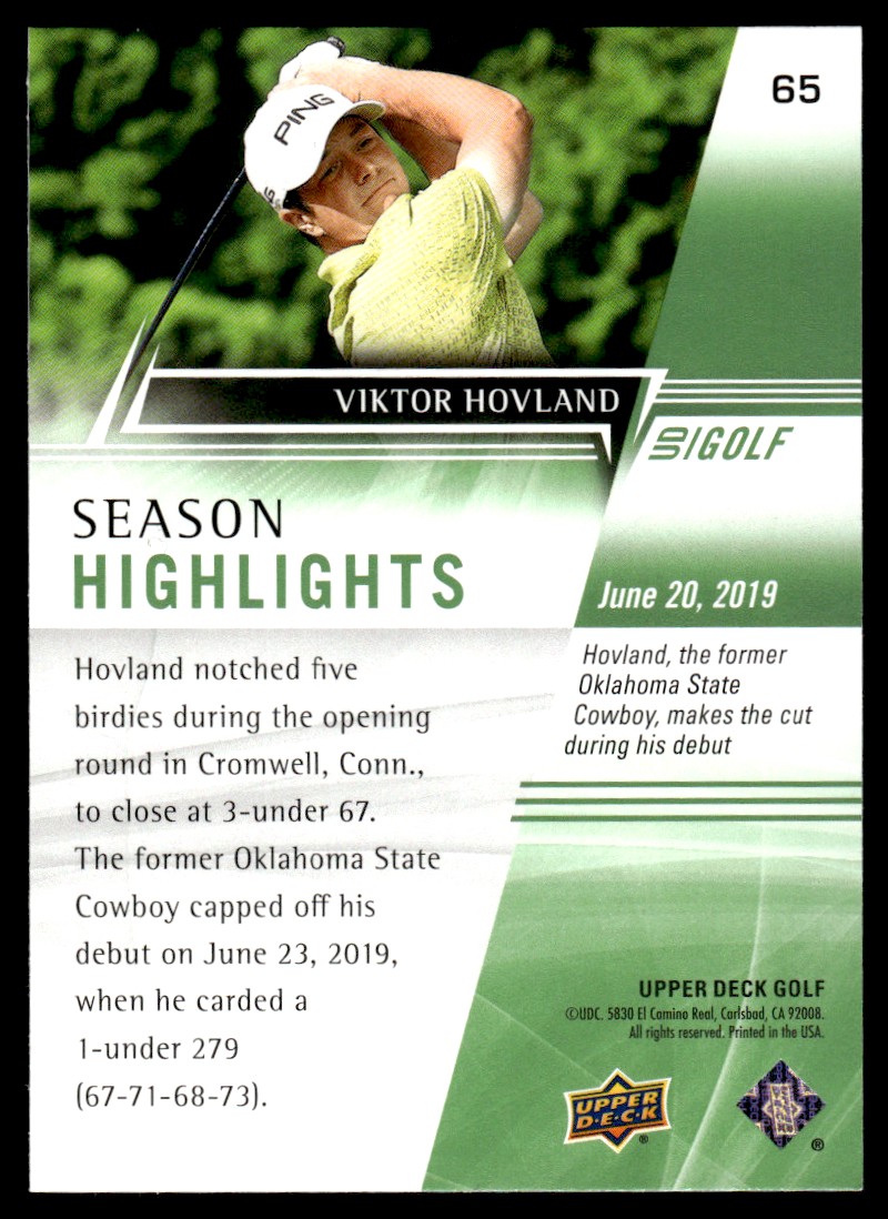 | Viktor Hovland Season HIghlights DEBUT DATE 2024 Upper Deck Golf #65 Card |