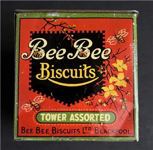 BEE BEE BISCUIT TIN BLACKPOOL TOWER ASSORTED MONEY BOX ADVERTISING DISPLAY TIN