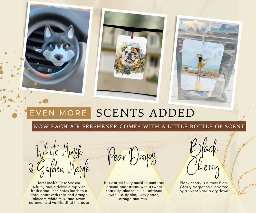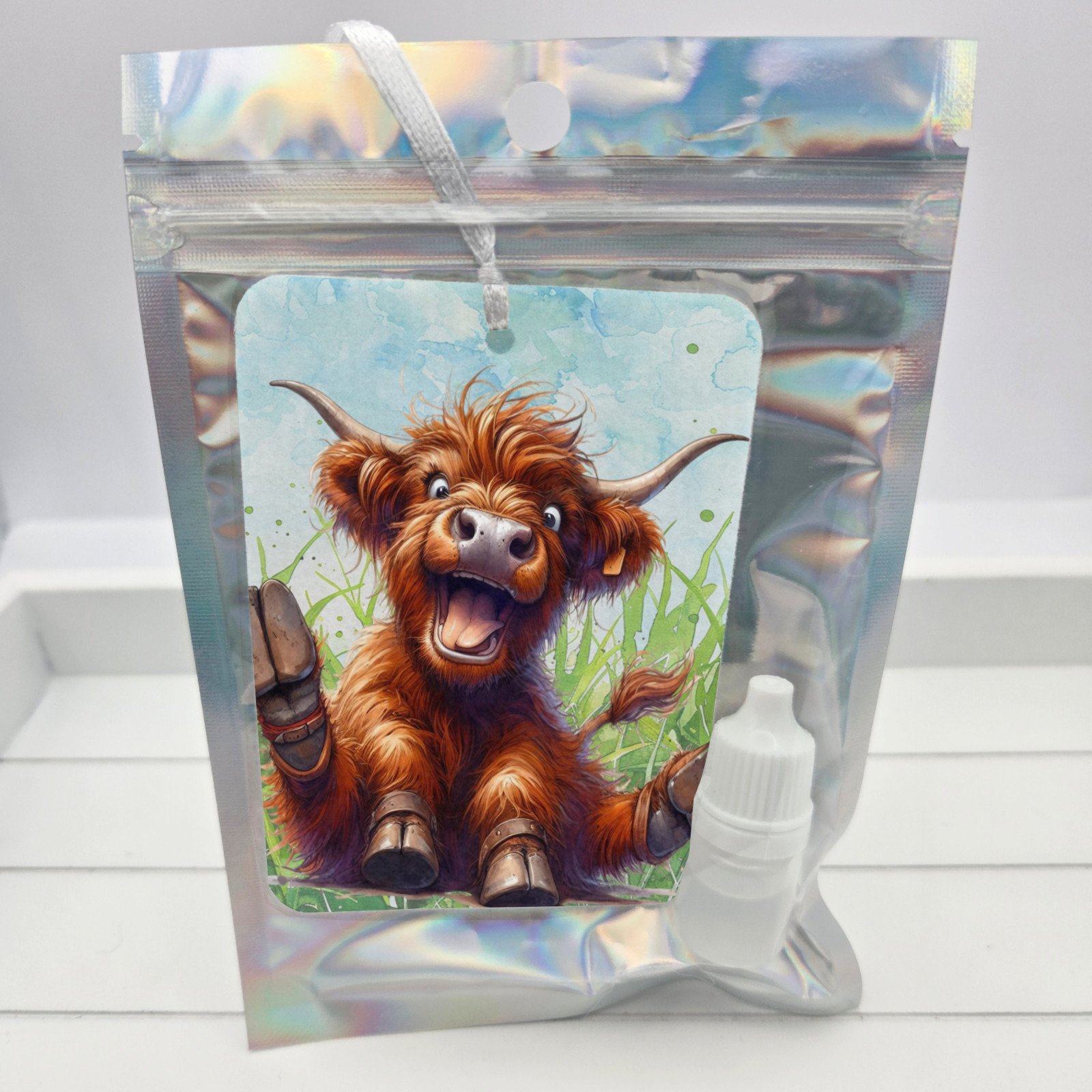 Each air freshener is individually packaged in an attractive holographic foil bag for easy gifting and comes with a separate 1ml of fragrance in a bottle.