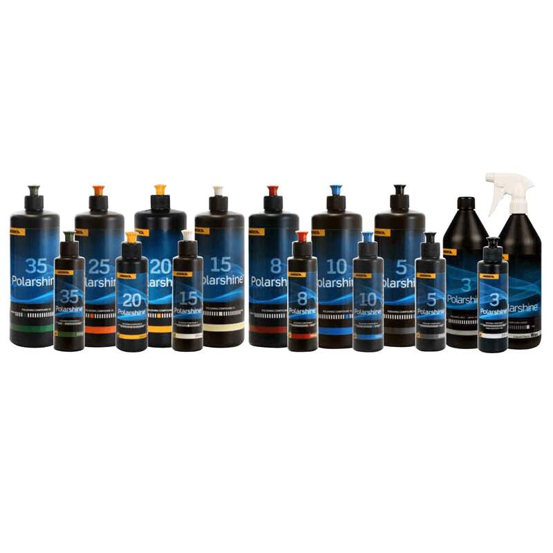 Die Polarshine Polituren von MIRKA wurden speziell für anspruchsvolle Polieranwendungen entwickelt. Das Sortiment reicht groben bis feinen Polituren.
