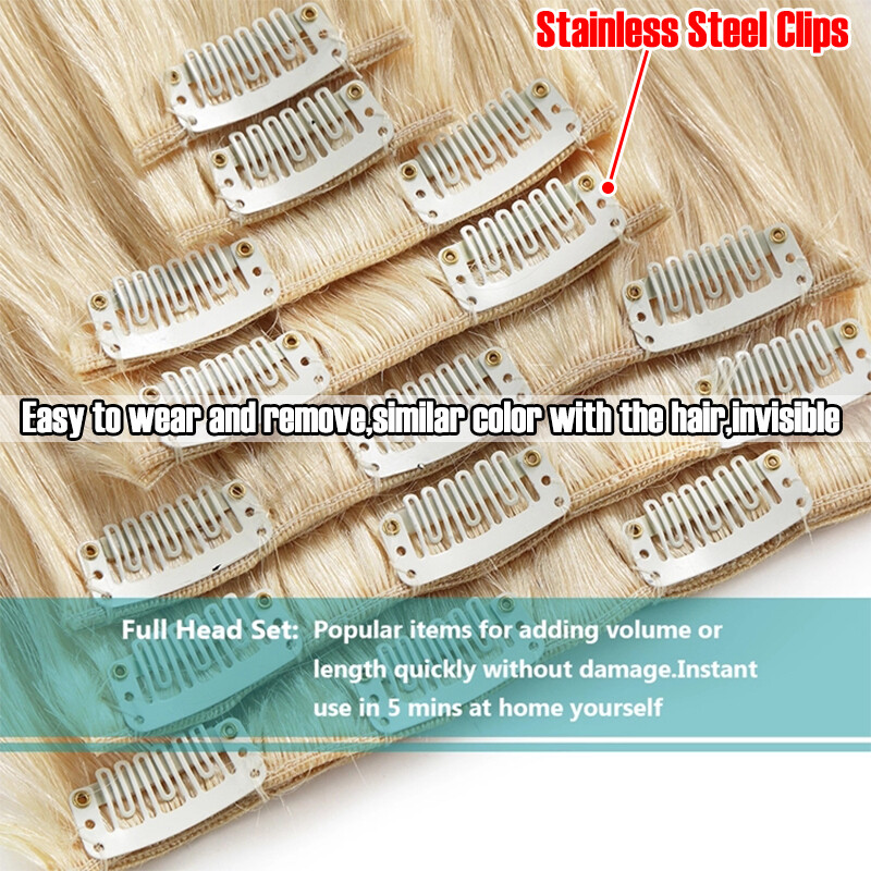 8 PCS 18 Clips full head Remy Human Hair Extensions