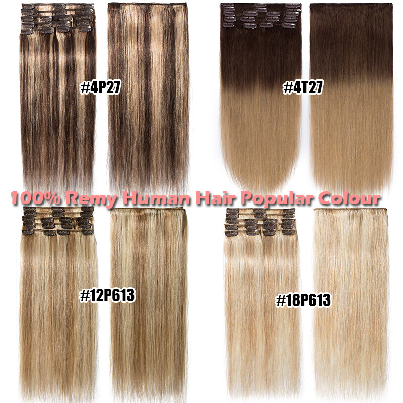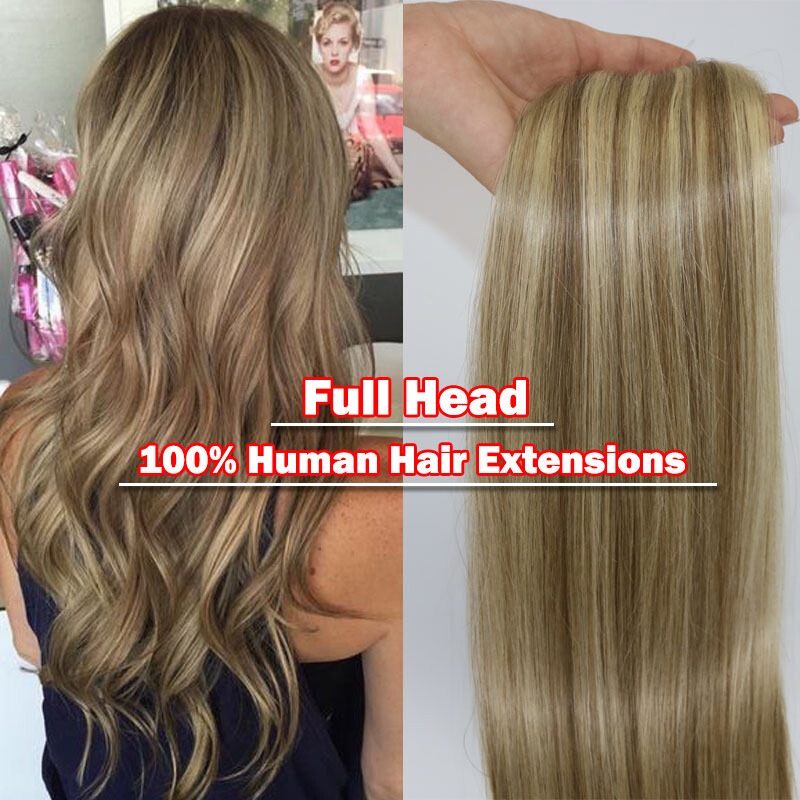 CLEARANCE Clip In 100% Real Remy Human Hair Extensions Full Head Highlight US Ss