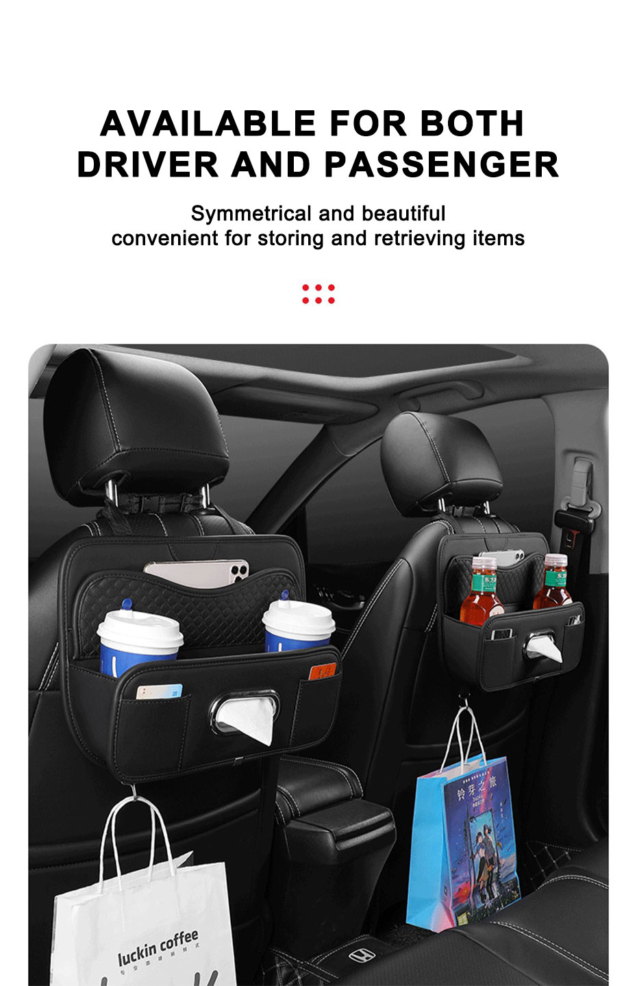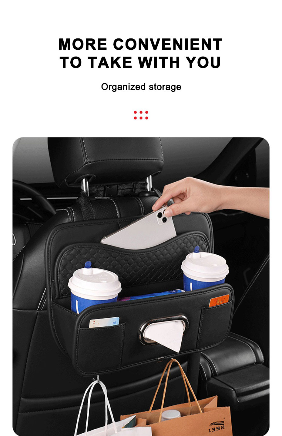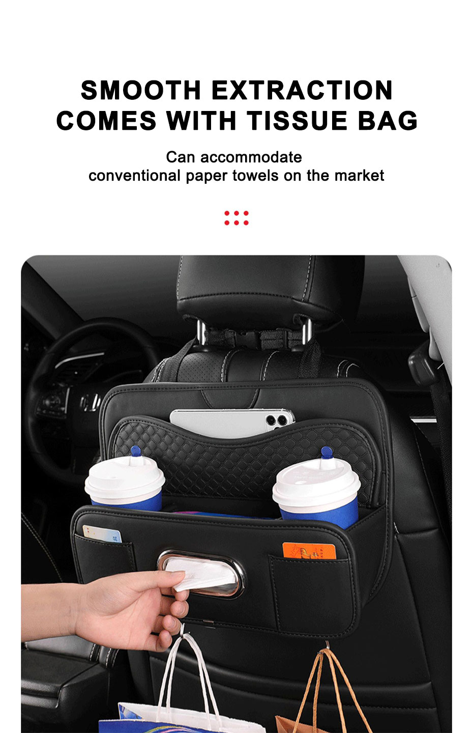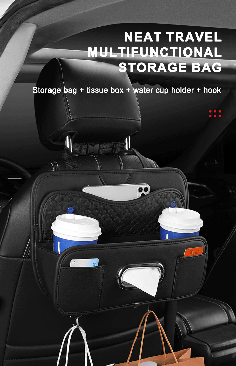 SEAMETAL Multifunctional Car Storage Bag Large Capacity Car Neat Travel Storage Tissue Box Water Cup Holder With Hooks