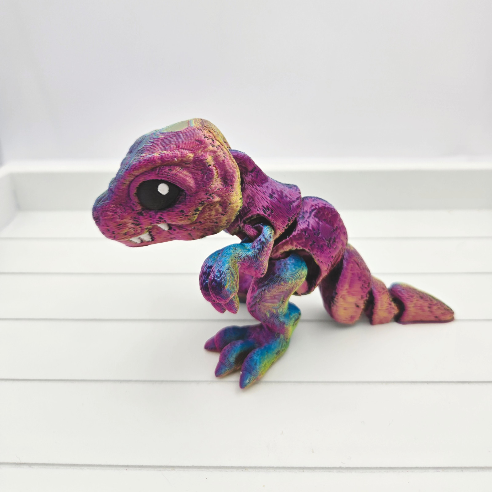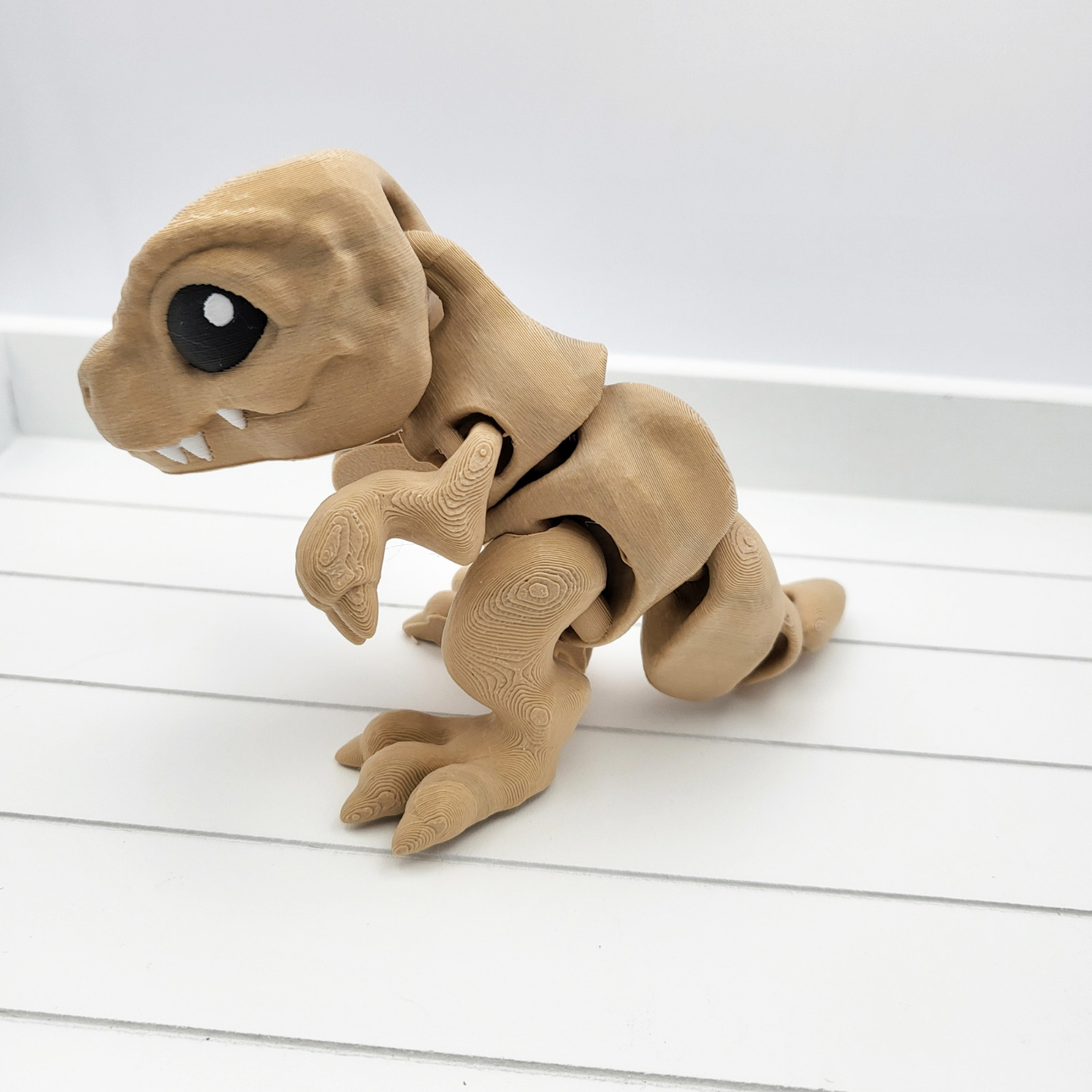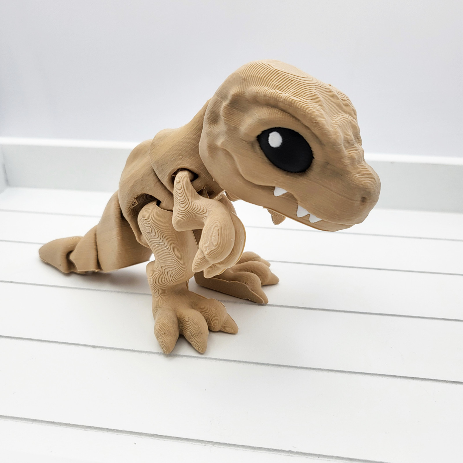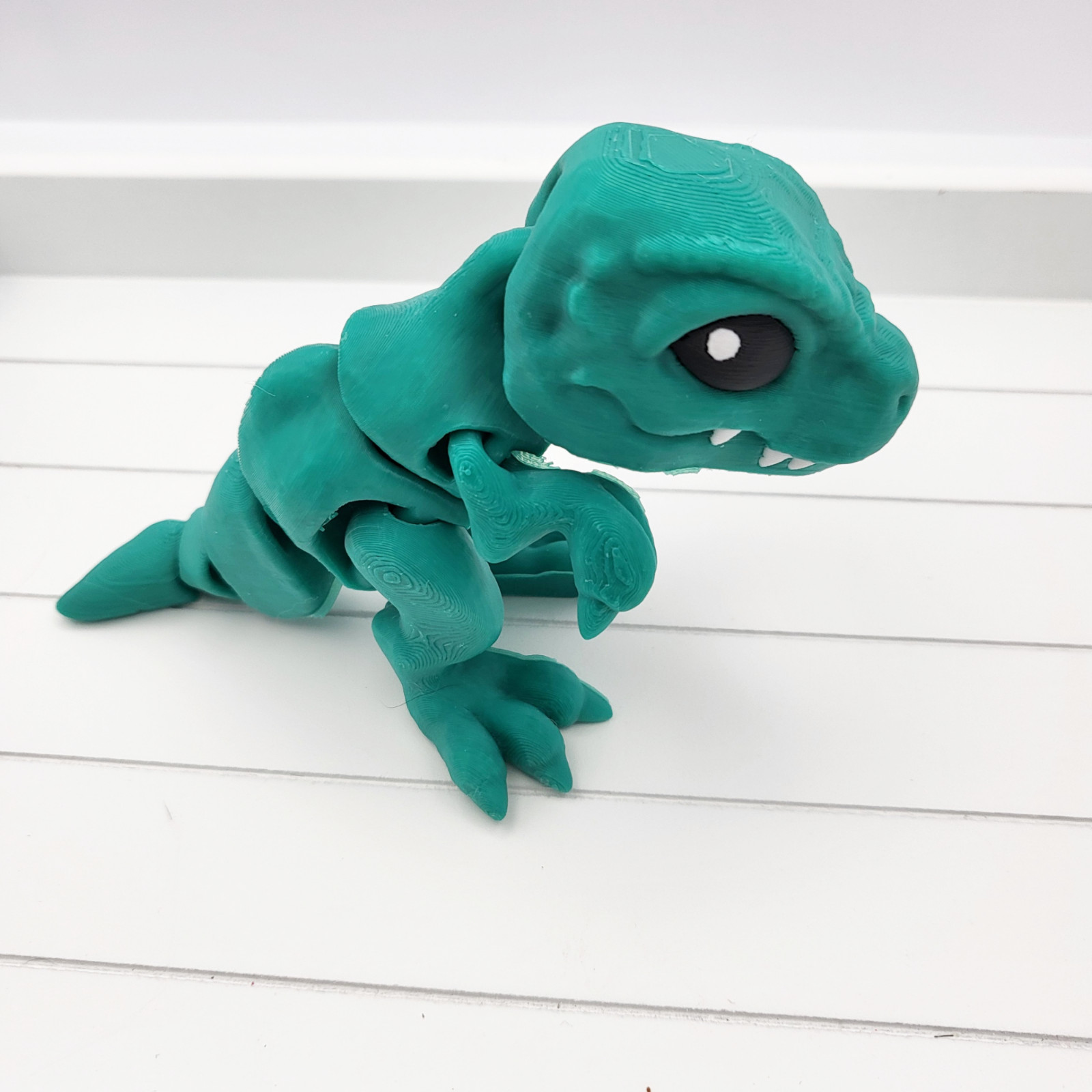 This 3D printed Tiny T-Rex Dinosaur. The unique dinosaur shape and articulated design make it a great fidget toy as well. Available in a range of colours to suit your personal style, simply pick your desired colour in the dropdown box.