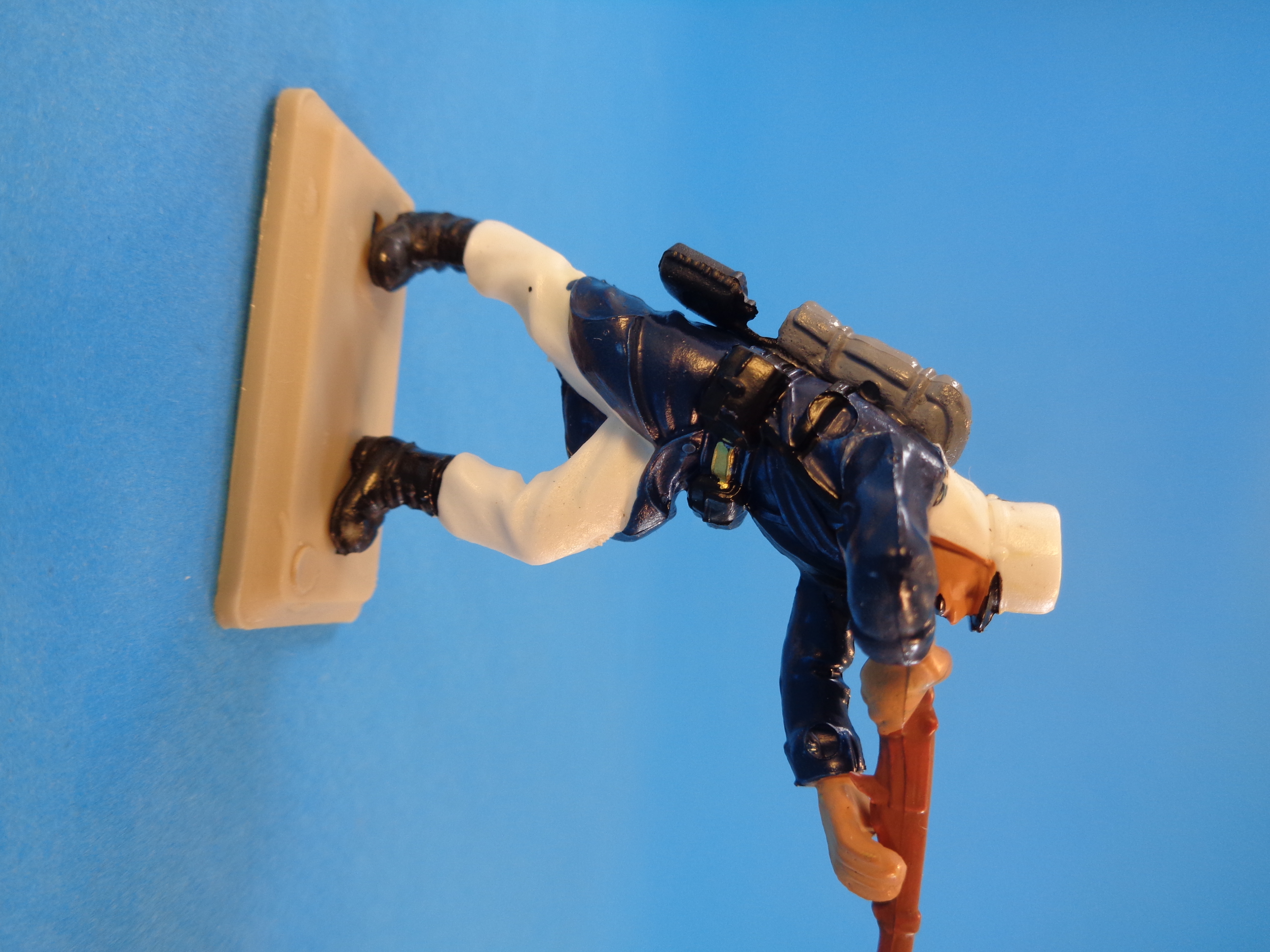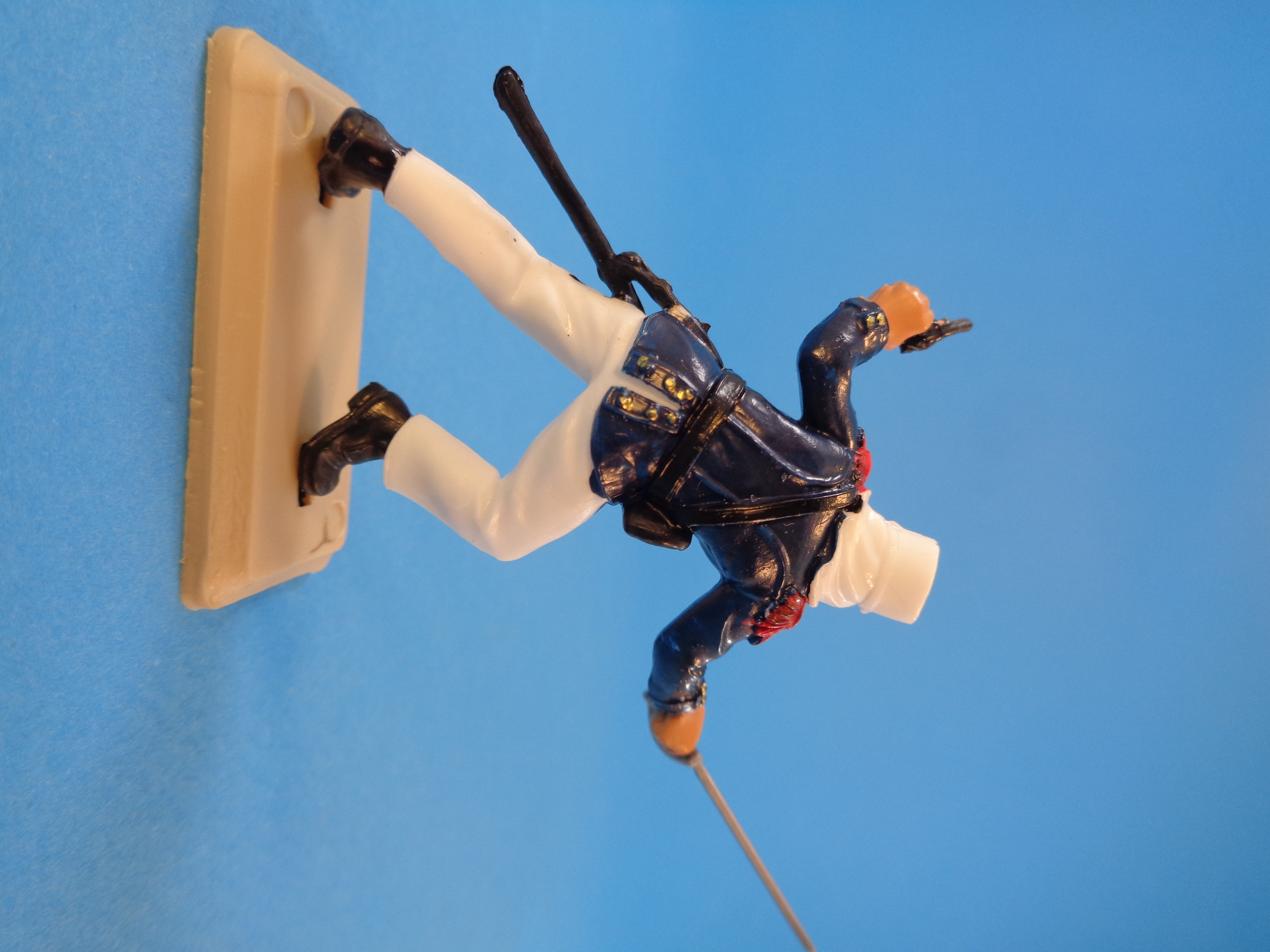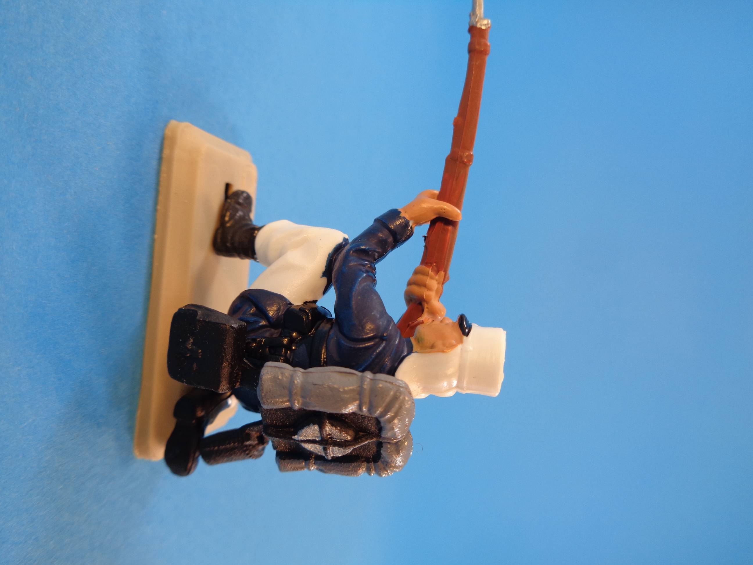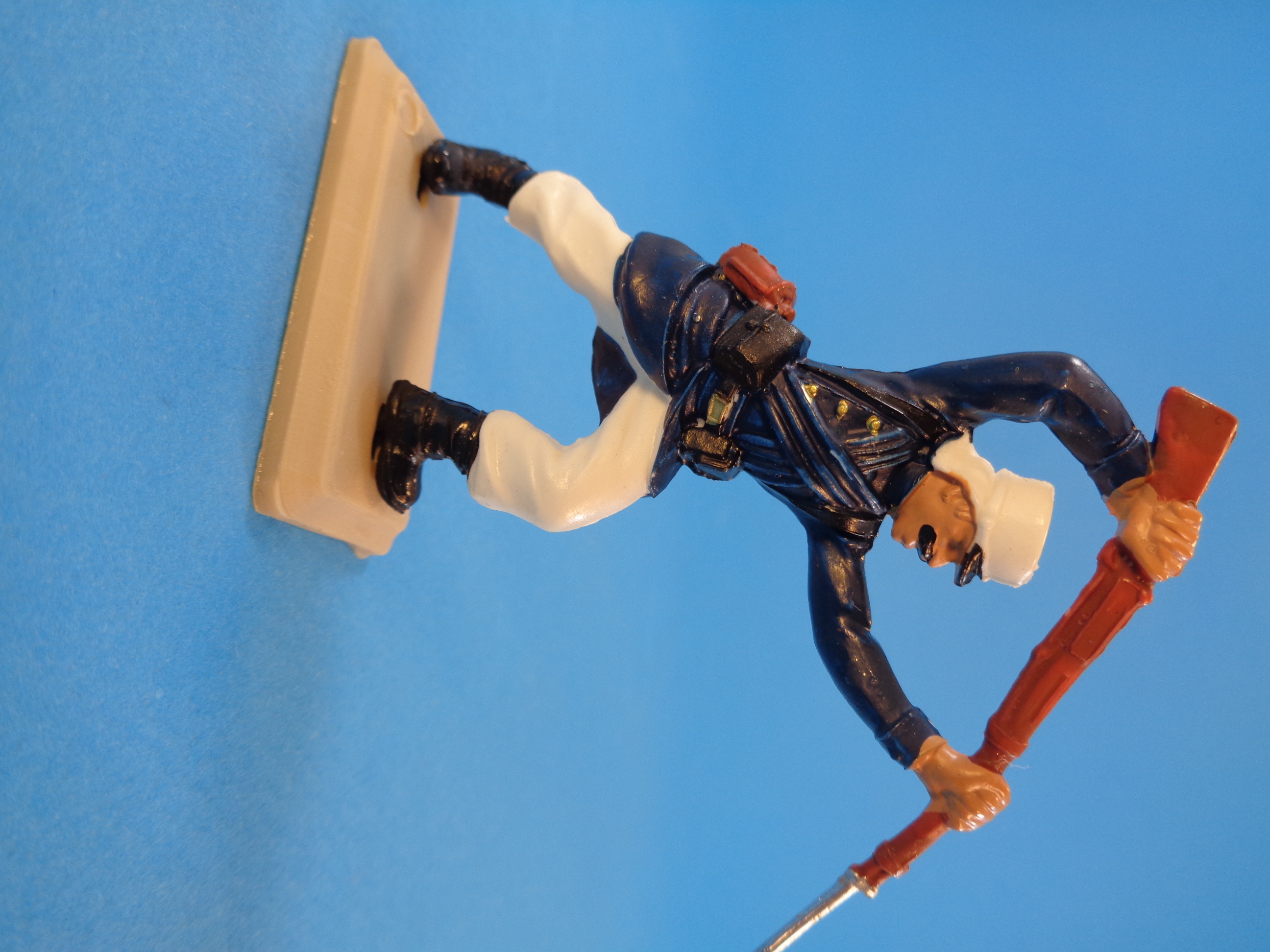 The set is made up of plastic six figures (one officer and five regular soldiers) in different action positions, wearing blue tunics and white trausers and kepi.