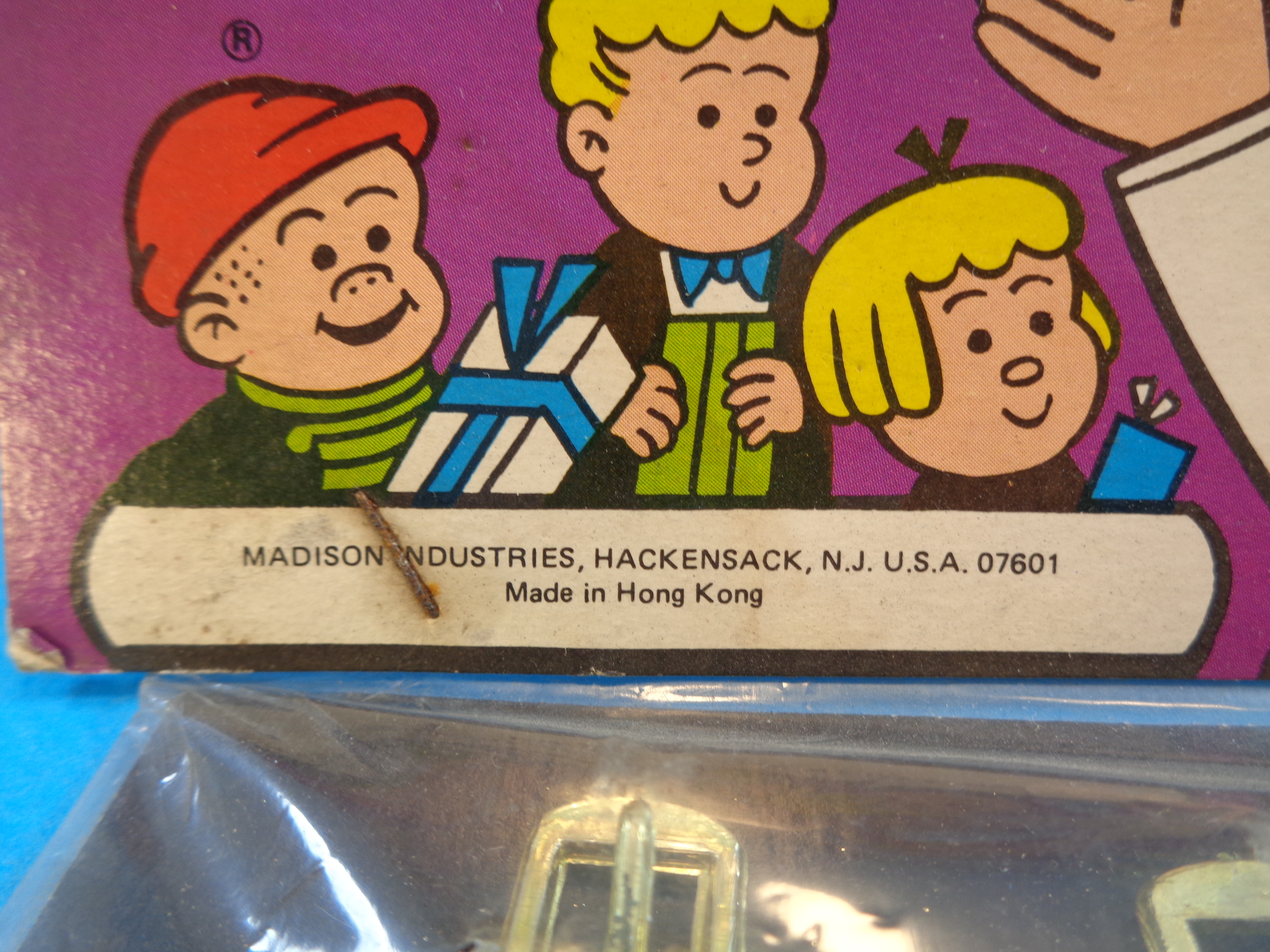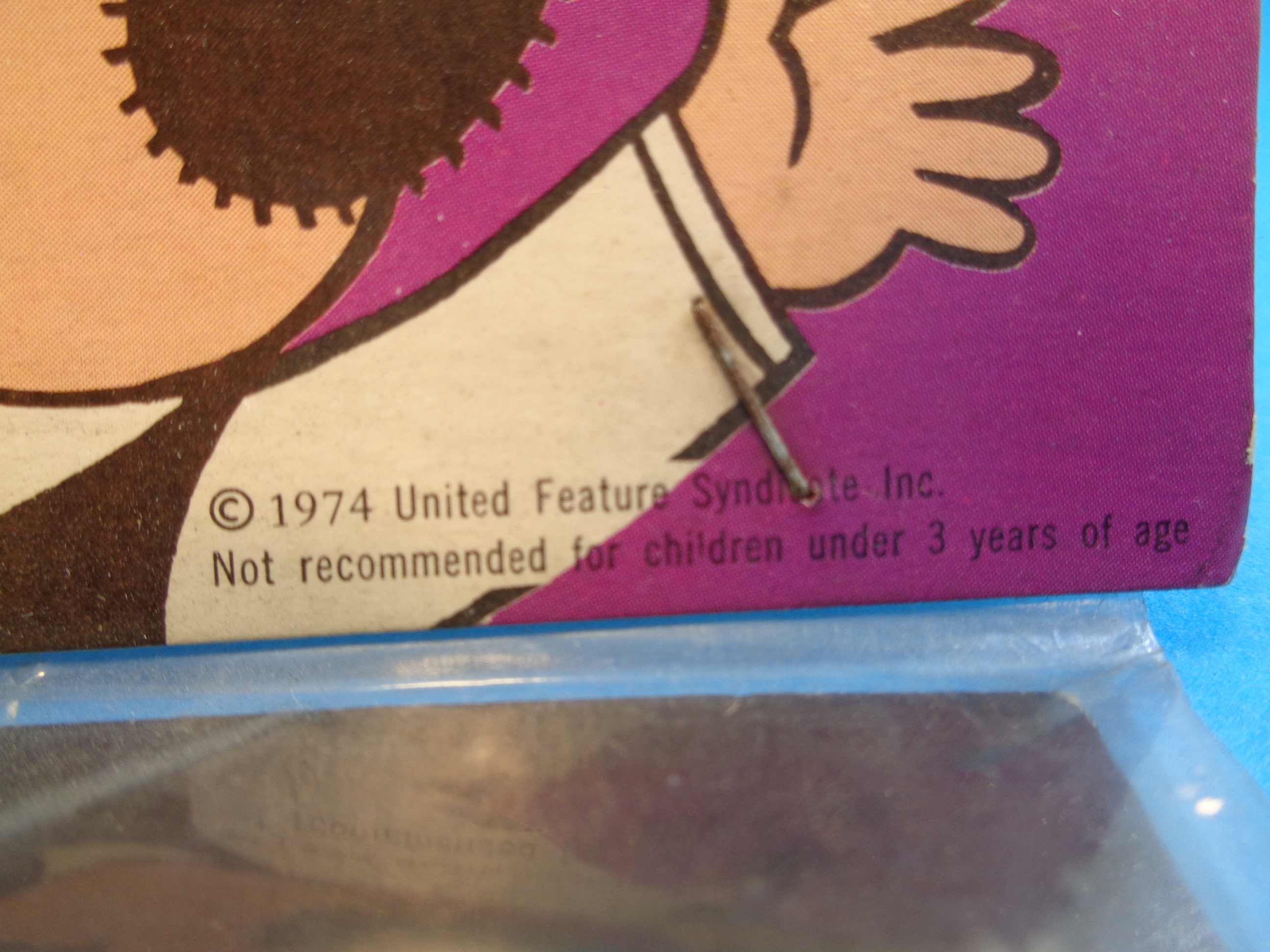 It was made in Hong Kong for Madison Industries, Hackensack, USA under 1974 United Feature Syndicate.