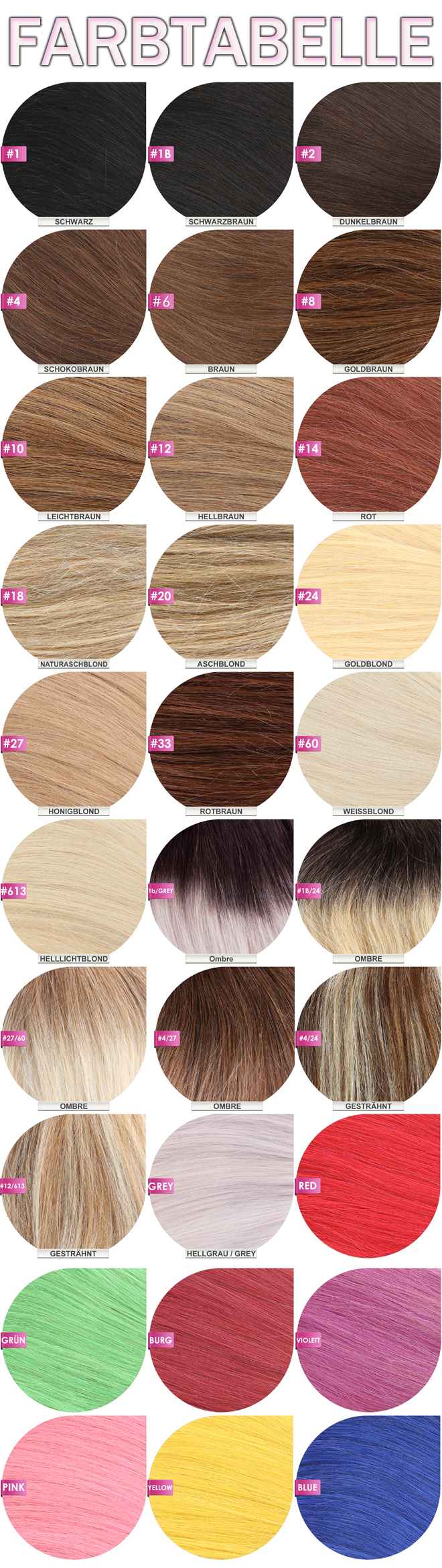 - Indische, seidenglatte Haare mit sehr guter Qualität (Remy AAA)