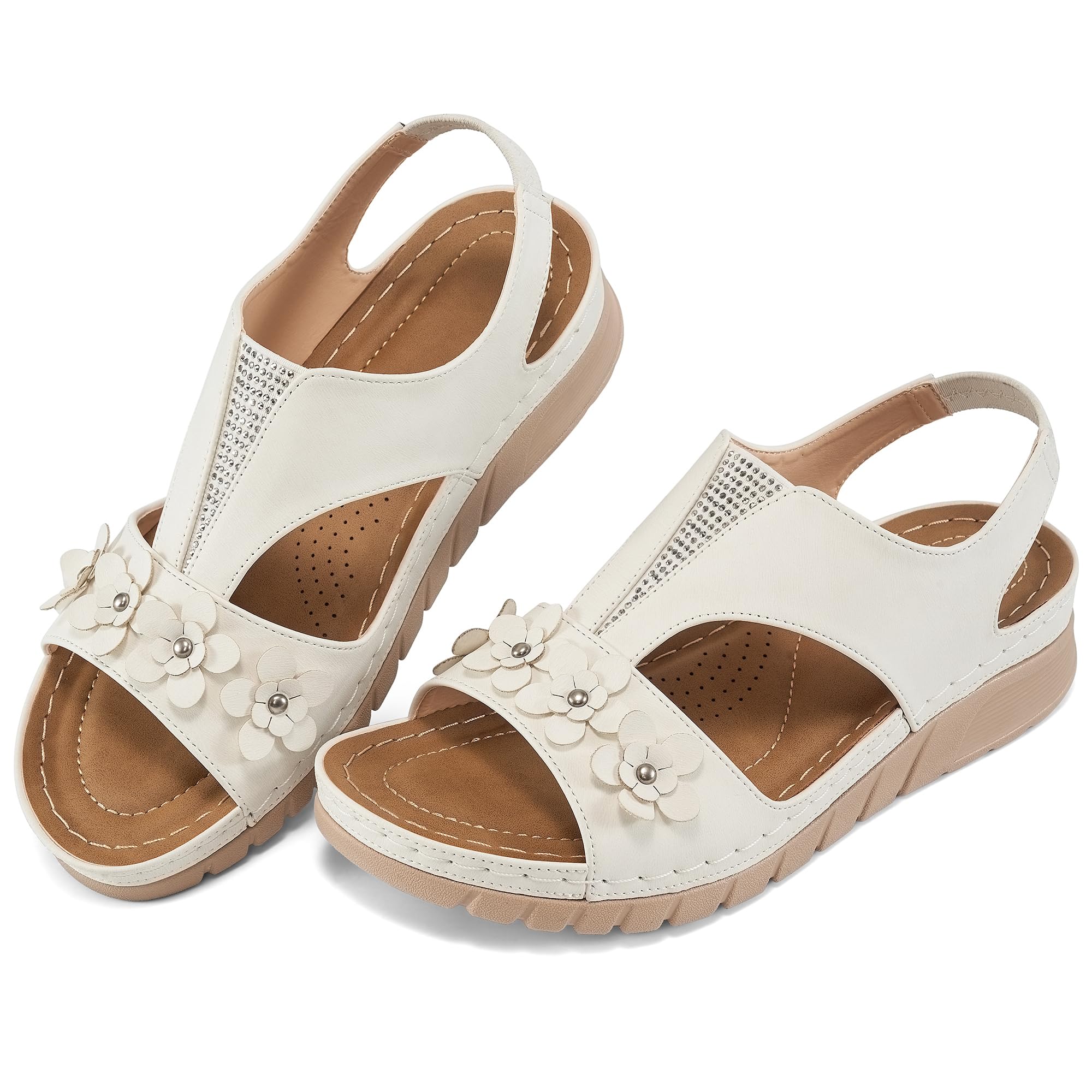 HARENCE Wedge Sandals for Women Dressy: Comfortable Walking Platform 6.5 M White