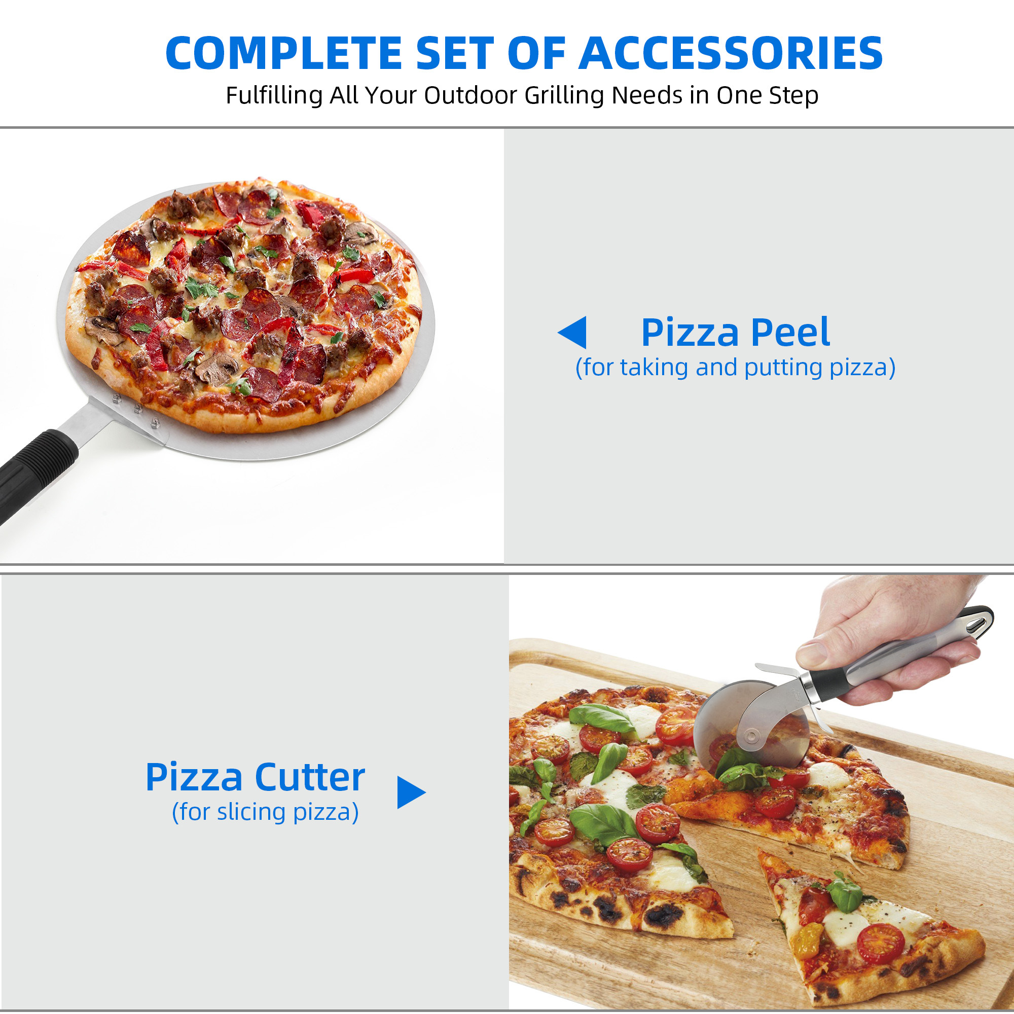Complete pizza kit: This package includes a pizza peel and a pizza cutter. It gives you all the tools you need to make pizzas with ease. The pizza peel allows you to easily slide pizzas in and out of the oven, while the pizza cutter ensures clean and precise slices.