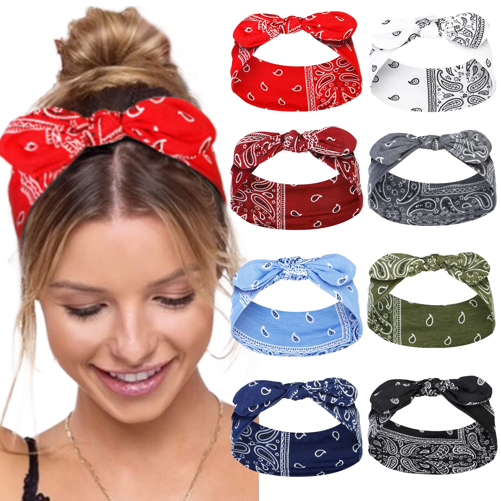 Bandana Headbands for Women with Bow Paisley Cute Summer Hair Accessories Wide Knotted Headband Bow Hair Bands Rabbit Ears Womens Turban Headbands Headwraps for Girls
