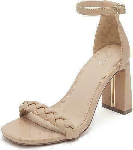 Women's Braided Heeled Sandals Square Open Toe Ankle Strap Chunky Heels