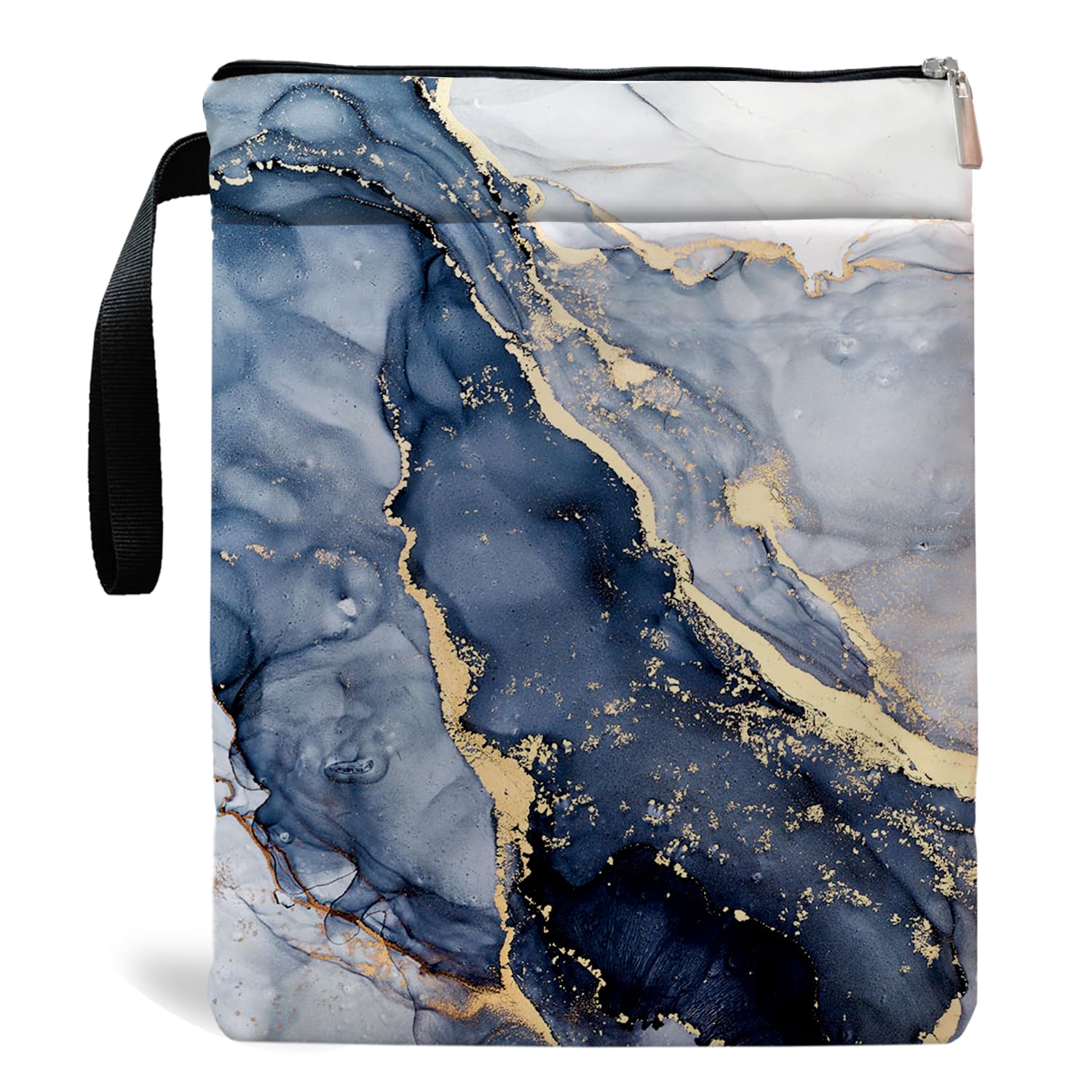 Book Sleeve Book Sleeve for Book Lovers Book Protector Bookish Gifts Book Cover with Zipper for Paperback Washable Bookcover for Teen Adult Teacher Gifts(Golden Cyan Marble)