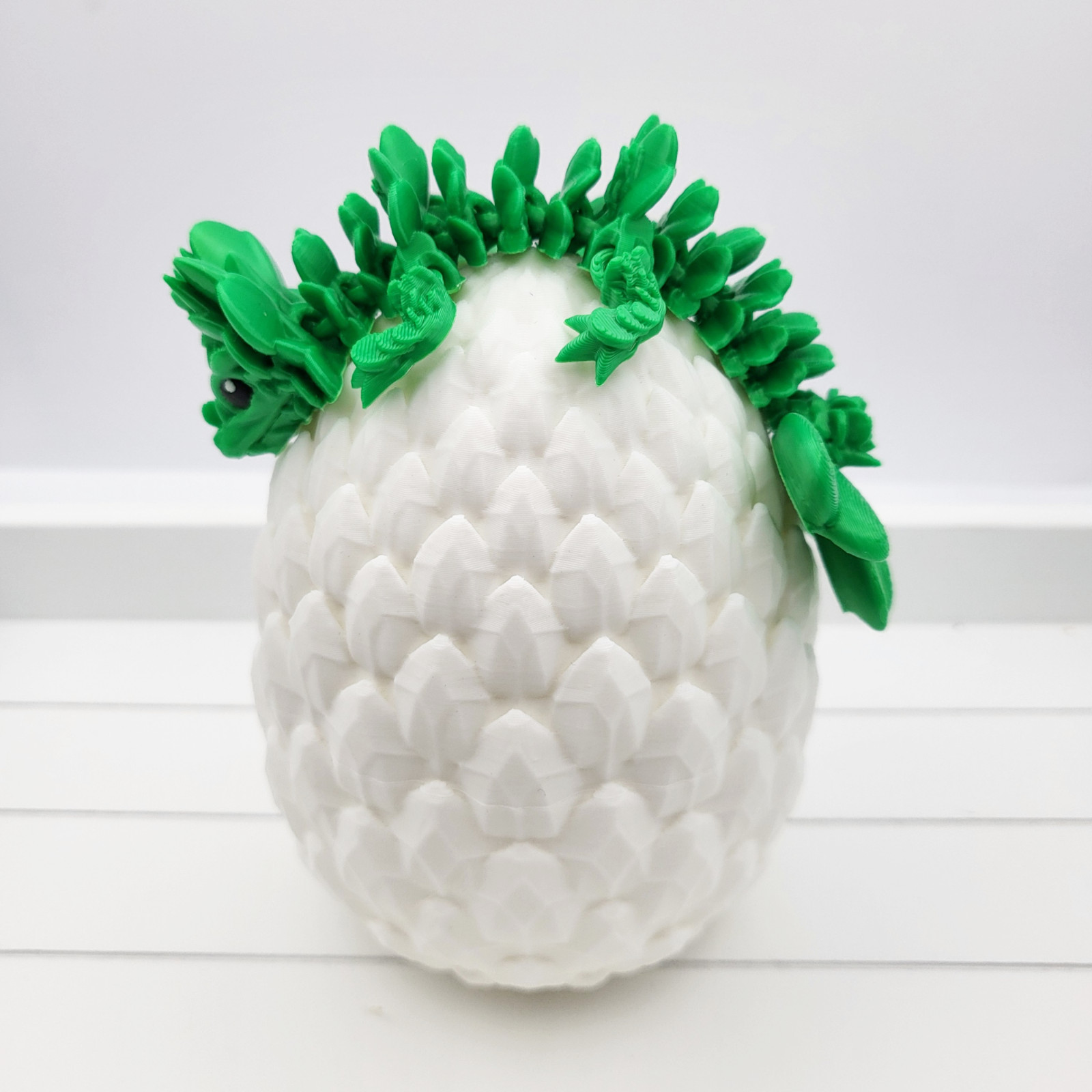Transform your space into a mystical realm with this exquisite 3D Printed Baby Lucky Clover Dragon and Dragon Scale Egg. Crafted with precision, this one-of-a-kind piece adds a unique touch to any room. Bring out your inner adventurer and create a captivating atmosphere with this stunning decor.