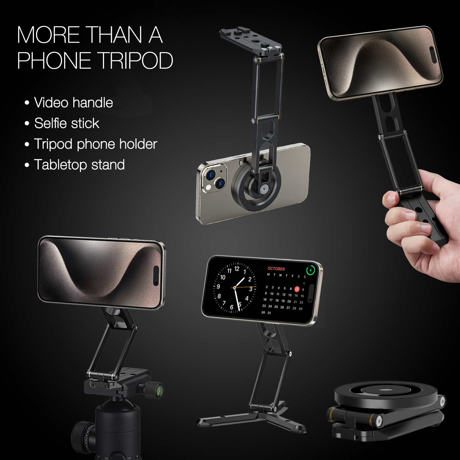 CAMOLO Magnetic Phone Holder Foldable Pocket Handheld Tripod Mount for iPhone 15