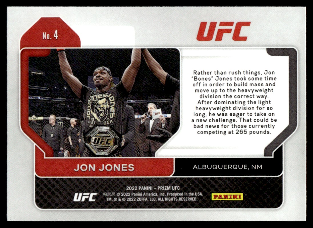 | Jon Jones The GOAT 2022 Panini Prizm UFC #4 Light Heavyweight |