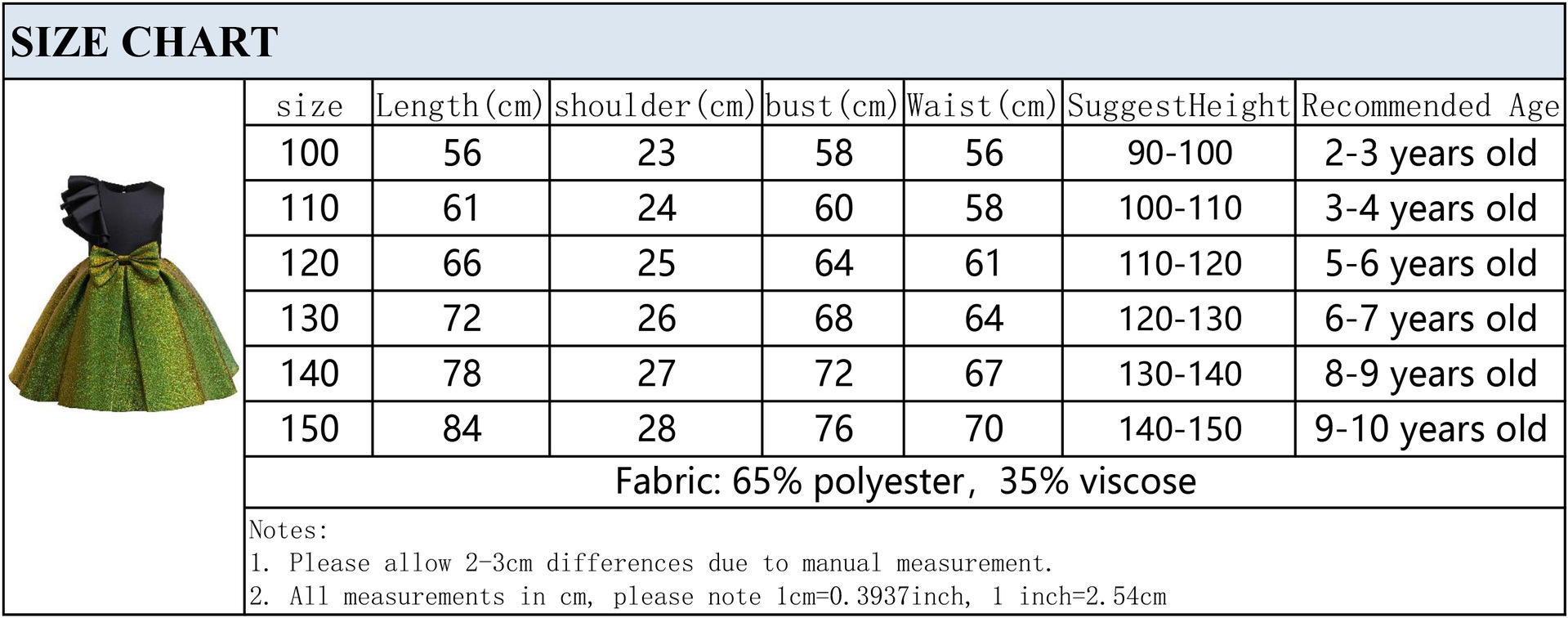 Size: 100/110/120/130/140/150