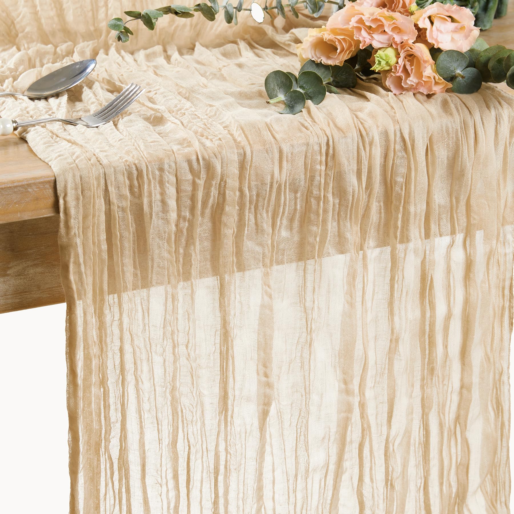 - 【SOFT MATERIAL】This cheesecloth table runner is made from high quality premium gauze table runner with wrinkled gauze fabric. It is soft while also being romantic, delicate, and flowy. This gauze table runner is available in ten other colors and in packs of varying quantities.will work well in a rust,bohemian, farmhouse, or contemporary setting. You won’t want to miss out on adding this table runner to your dining space.