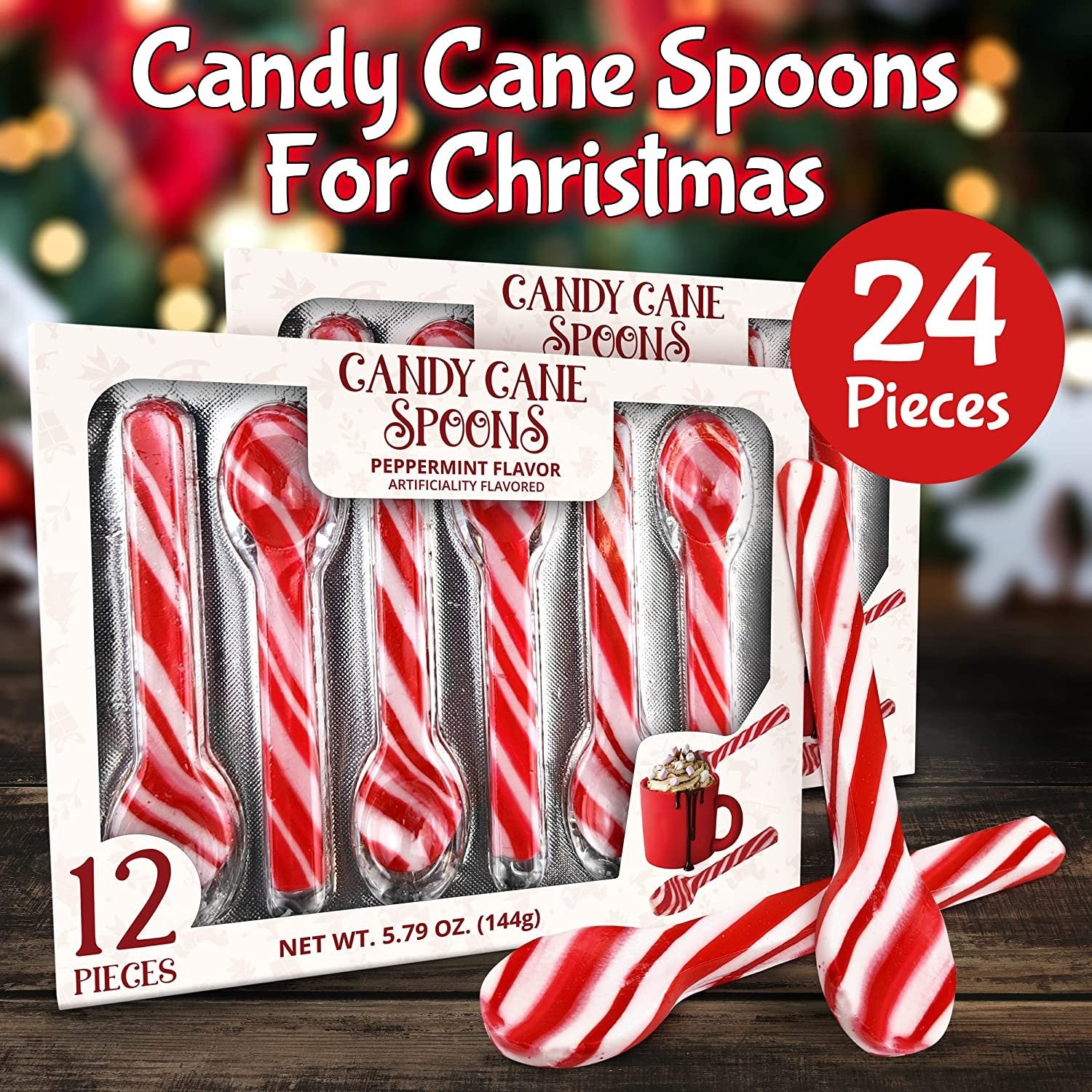 What You Get: This peppermint sticks bundle features a number of 48 candy canes in the shape of a spoon, each weighing 144 grams. The peppermint candy is the optimal solution for a successful Christmas Eve with your loved ones.