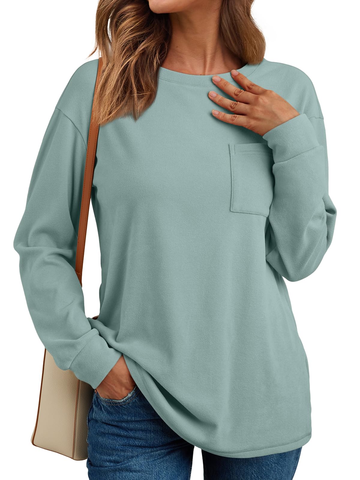 - Features: Lightweight sweatshirts features a crew neck and long sleeved design, and a loose fit is perfect for women of any age and any shape, adding a pocket to the basic classic design for a more personalized experience.