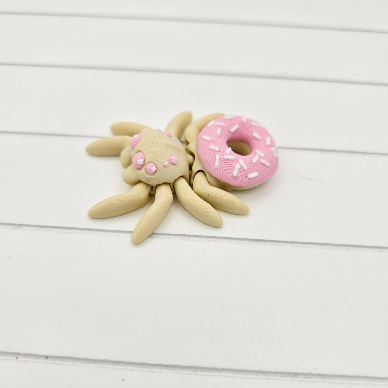 This 3D printed Mini Donut Spider. The unique spider shape and articulated design make it a great fidget toy as well. Available in a range of colours to suit your personal style, simply pick your desired colour in the dropdown box.