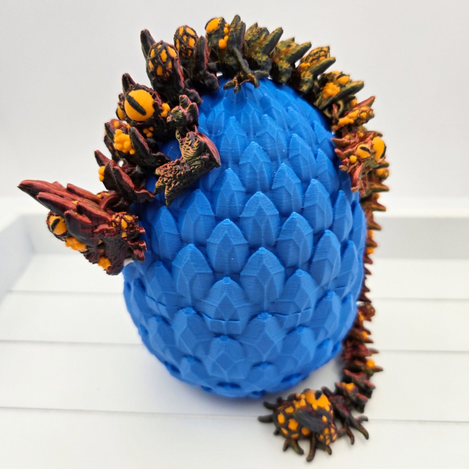 Transform your space into a mystical realm with this exquisite 3D Printed Baby Infested Dragon and Dragon Scale Egg. Crafted with precision, this one-of-a-kind piece adds a unique touch to any room. Bring out your inner adventurer and create a captivating atmosphere with this stunning decor.