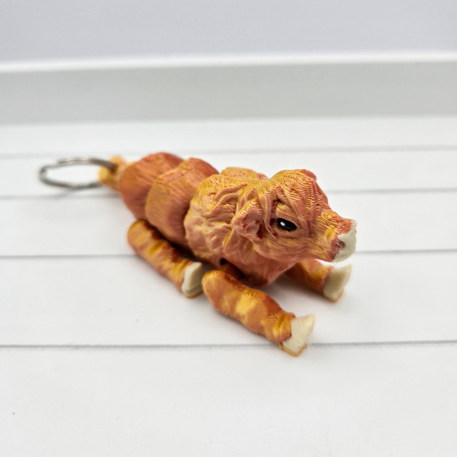 This 3D Printed Highland Cow Flexi Keyring is the perfect accessory for any highland cow lover. With its articulated design, this keyring doubles as a fidget toy, making it a great addition to any bag or set of keys.