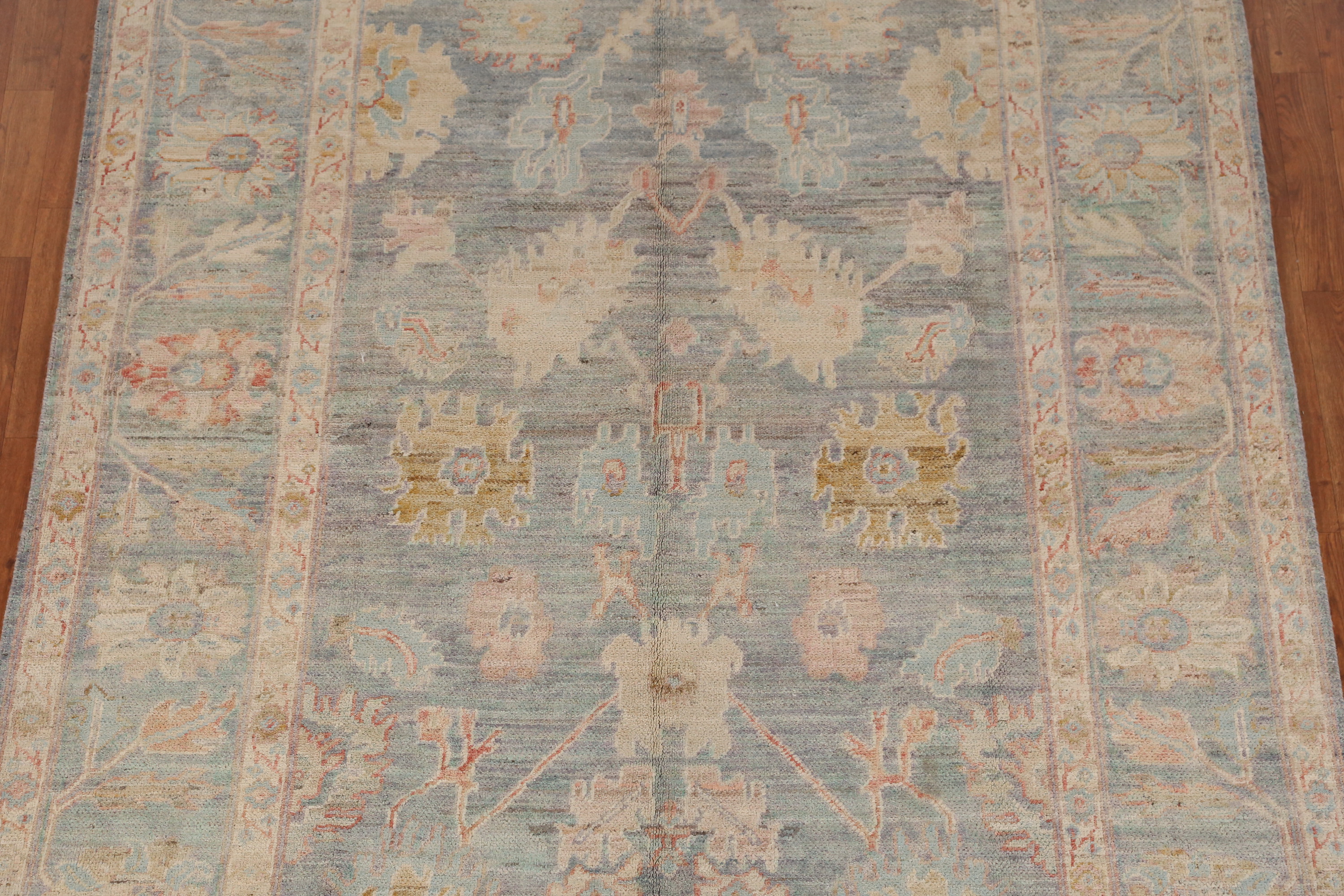 Vegetable Dye All-Over Pattern Oushak Wool Handmade Rug 7x10 ft Turkish Carpet