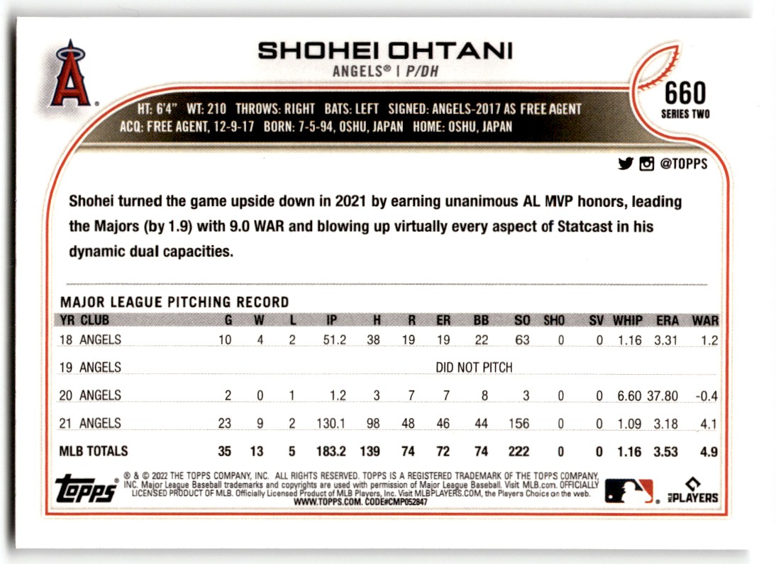 | 2022 Topps Shohei Ohtani #660 Los Angeles Angels |