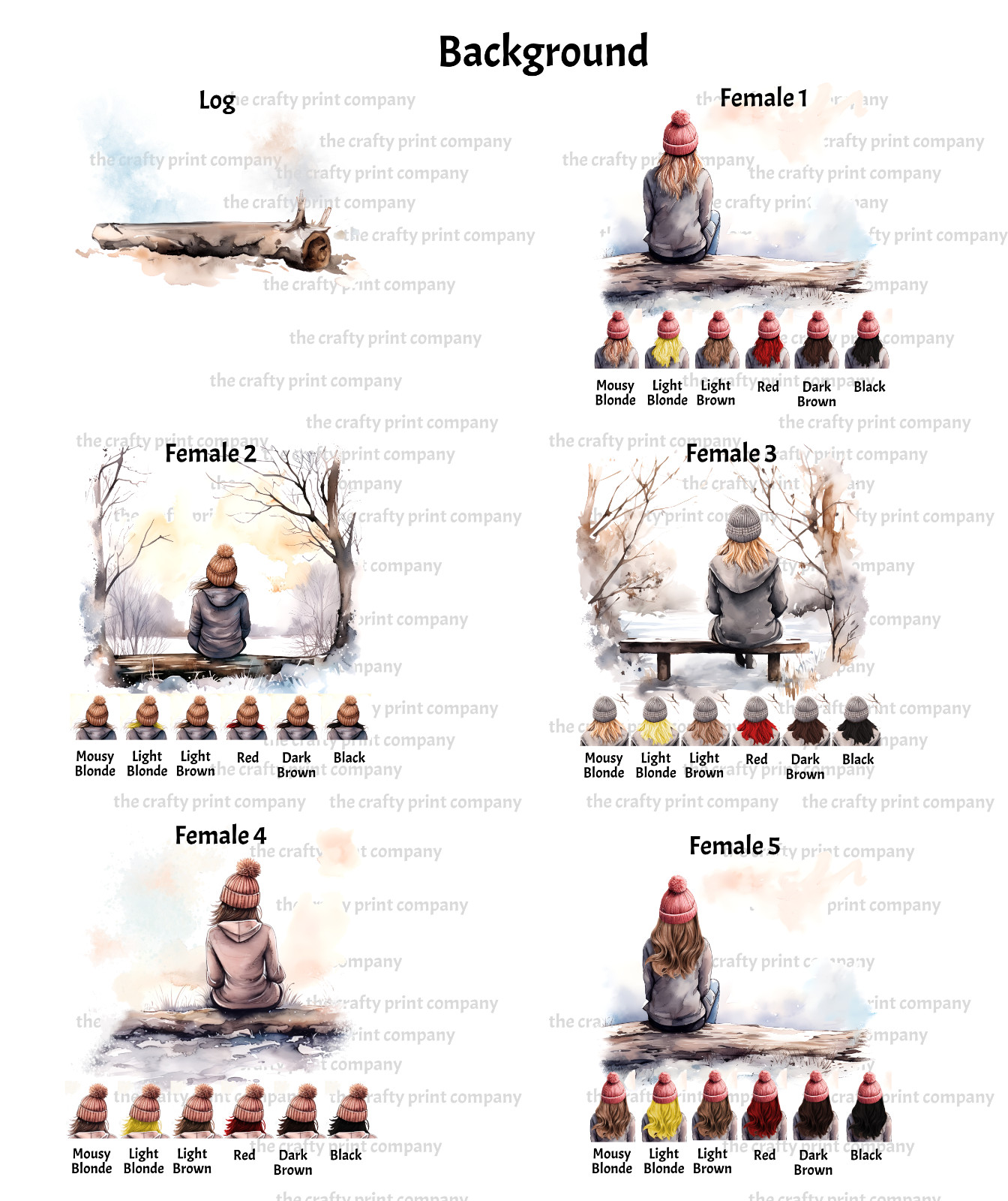 Choose your background, hair colour (if applicable) and dog breed.
