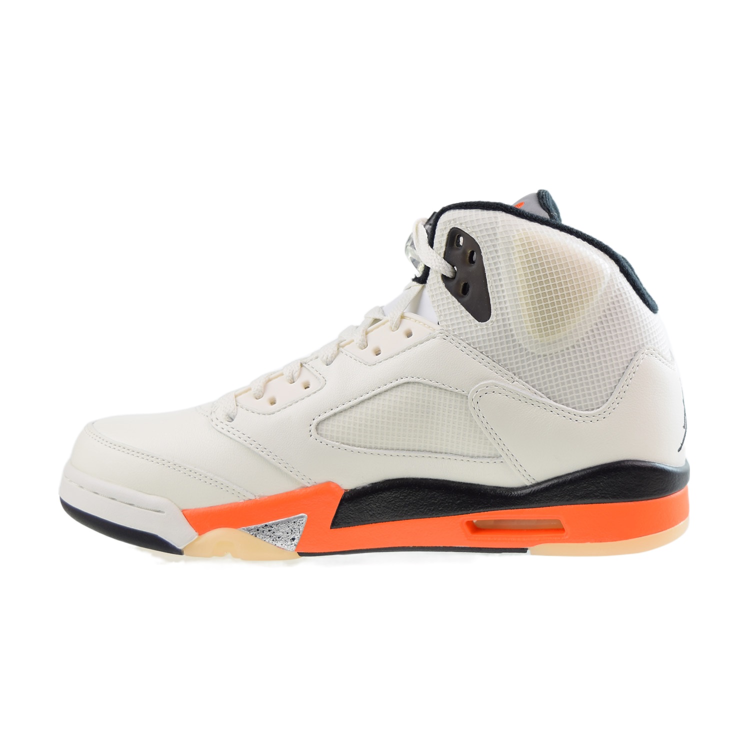 • Instead of utilizing signature Jordan 5 netted inserts on the quarter and tongue, the Shattered Backboard opts for a translucent mesh that also appears on the collar.
