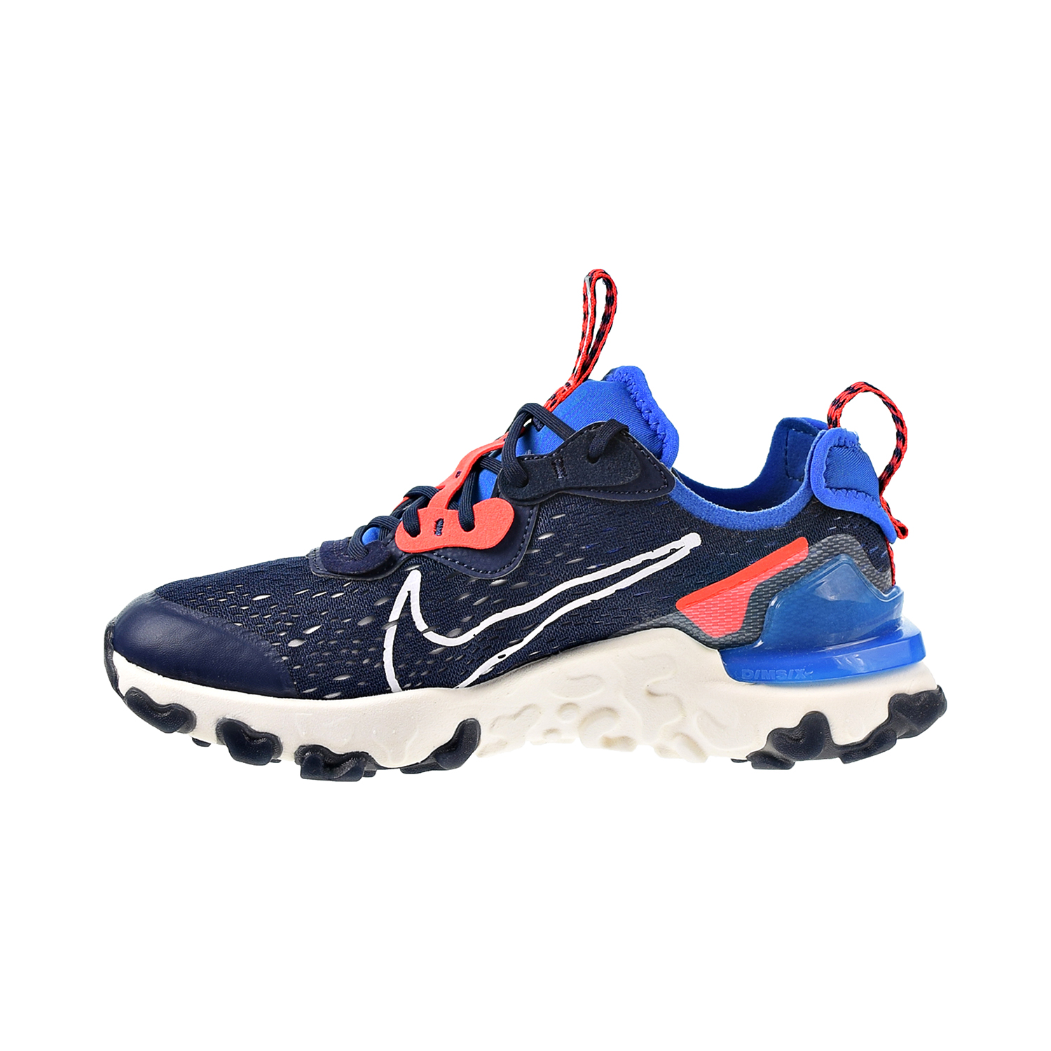 The Nike React Vision stands out whether you're at school or in the streets. It's lightweight on your feet and features Nike React technology for soft, bouncy, all-day cushioning. Breathable Support Mesh is lightweight and breathable to help keep your feet comfortable all day. Bouncy Cushioning Nike React foam is lightweight with a soft, springy sensation. Durable Design Rubber on the bottom provides durable traction. More Details Pull tabs on heel and tongue Heel clip Foam cushioning around the ankle and tongue.