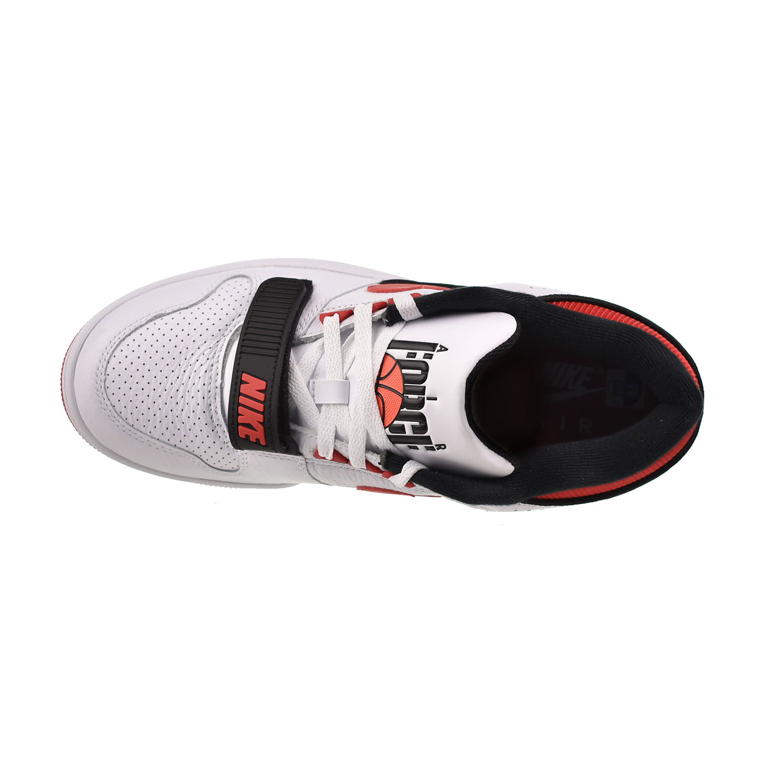 • Equally pristine are the details adjacent, from the red hue of the ribbed collar, Swoosh, and outsole to the blacked out finish of the strap and “AIR FORCE” branding.