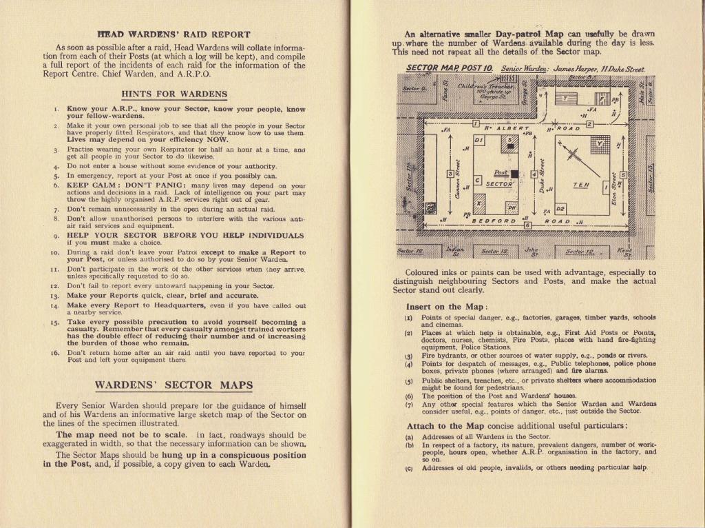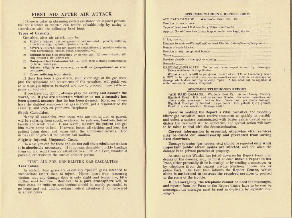 Other duties included helping to police areas suffering bomb damage and helping bombed-out householders. ARP wardens were trained in basic fire-fighting and first aid, and could keep an emergency situation under control until official rescue services arrived.
