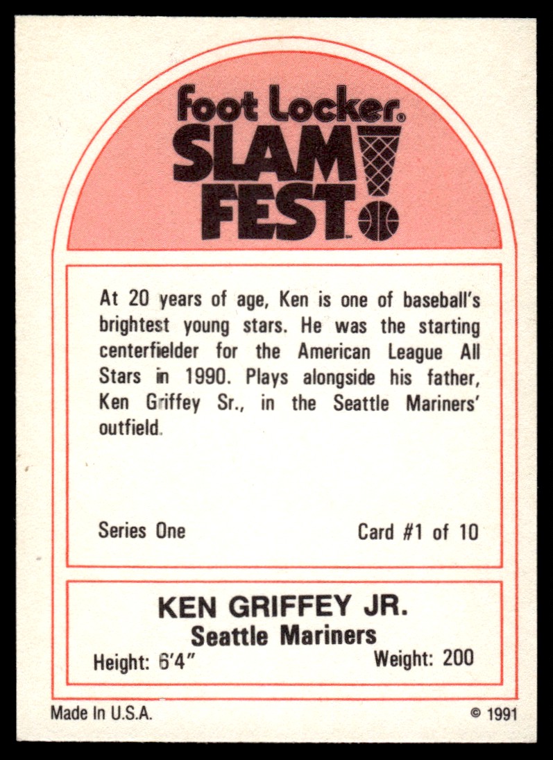 | Ken Griffey Jr. SLAM FEST 1991 Foot Locker #1 Baseball Card Seattle Mariners |