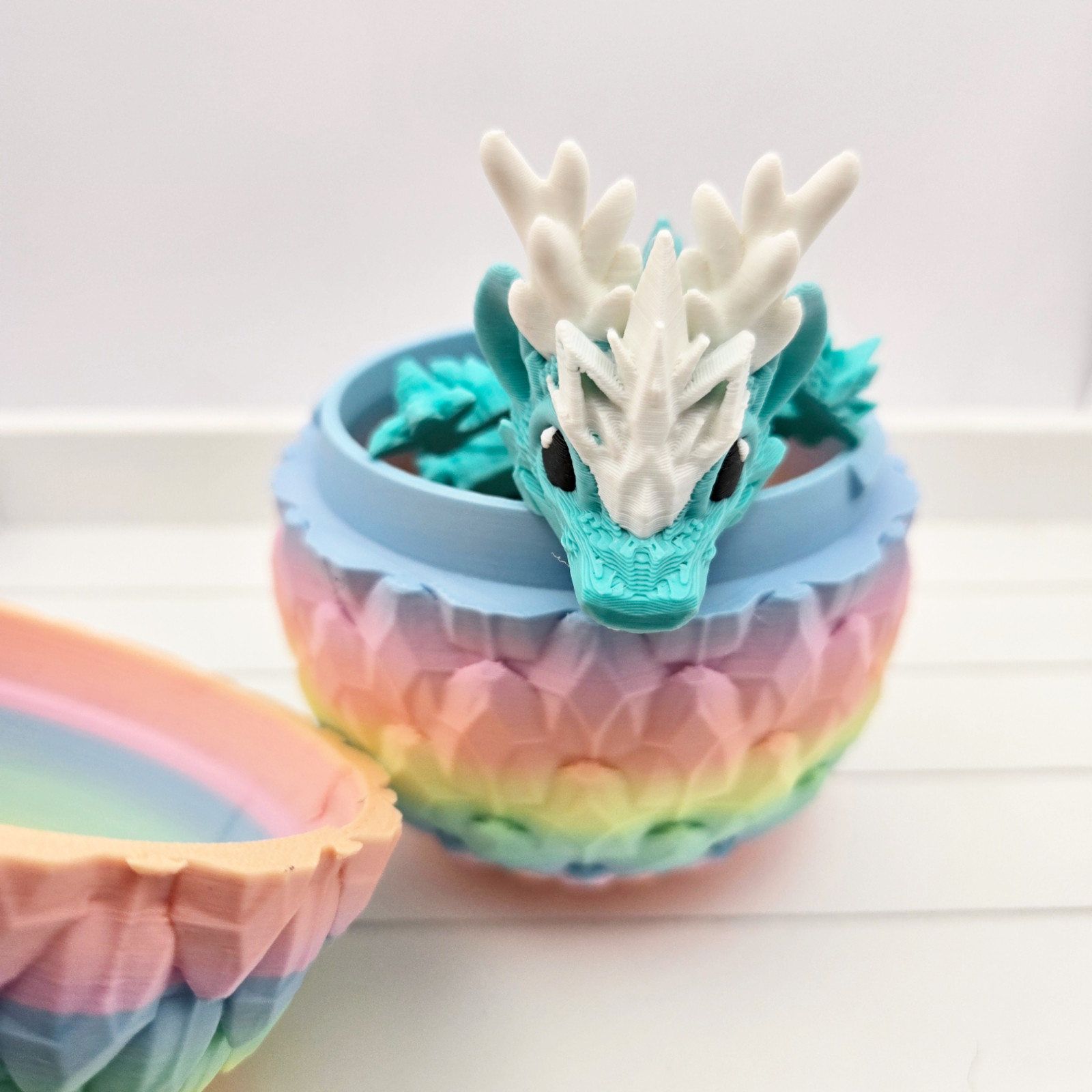 Transform your space into a mystical realm with this exquisite 3D Printed Baby Winter Dragon and Dragon Scale Egg. Crafted with precision, this one-of-a-kind piece adds a unique touch to any room. Bring out your inner adventurer and create a captivating atmosphere with this stunning decor.