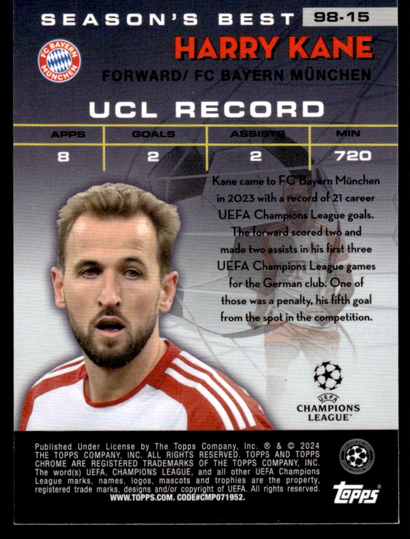 | Harry Kane Shooting Stars 2024 Topps Chrome UEFA Club Competitions #98-15 |
