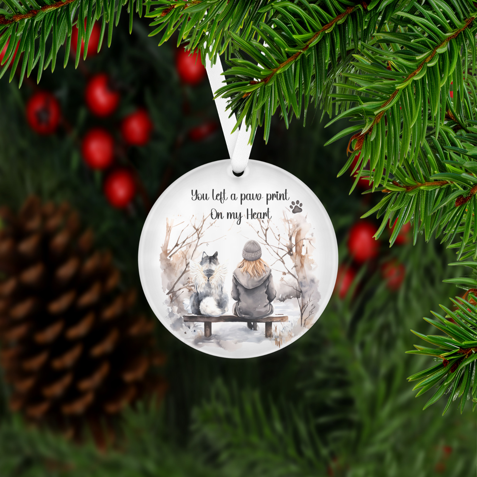You left a paw print on my Heart Dog Memorial Acrylic Bauble, Dog remembrance