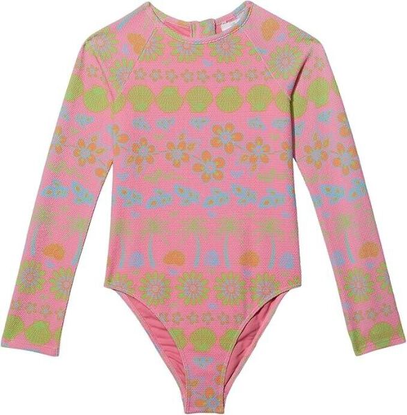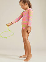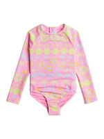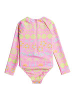 Inspire your little one's beach day with our ROXY Girl's Beach Day Together Long-Sleeve Swimsuit. Crafted from eco-conscious stretch fabric, this printed one-piece swimsuit has a snug fit and full coverage to keep her prepared for any ocean adventure.