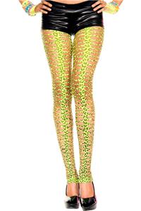 - Description: Pothole net tights feature a neon leopard print and open feet. Shorts and gloves not included.