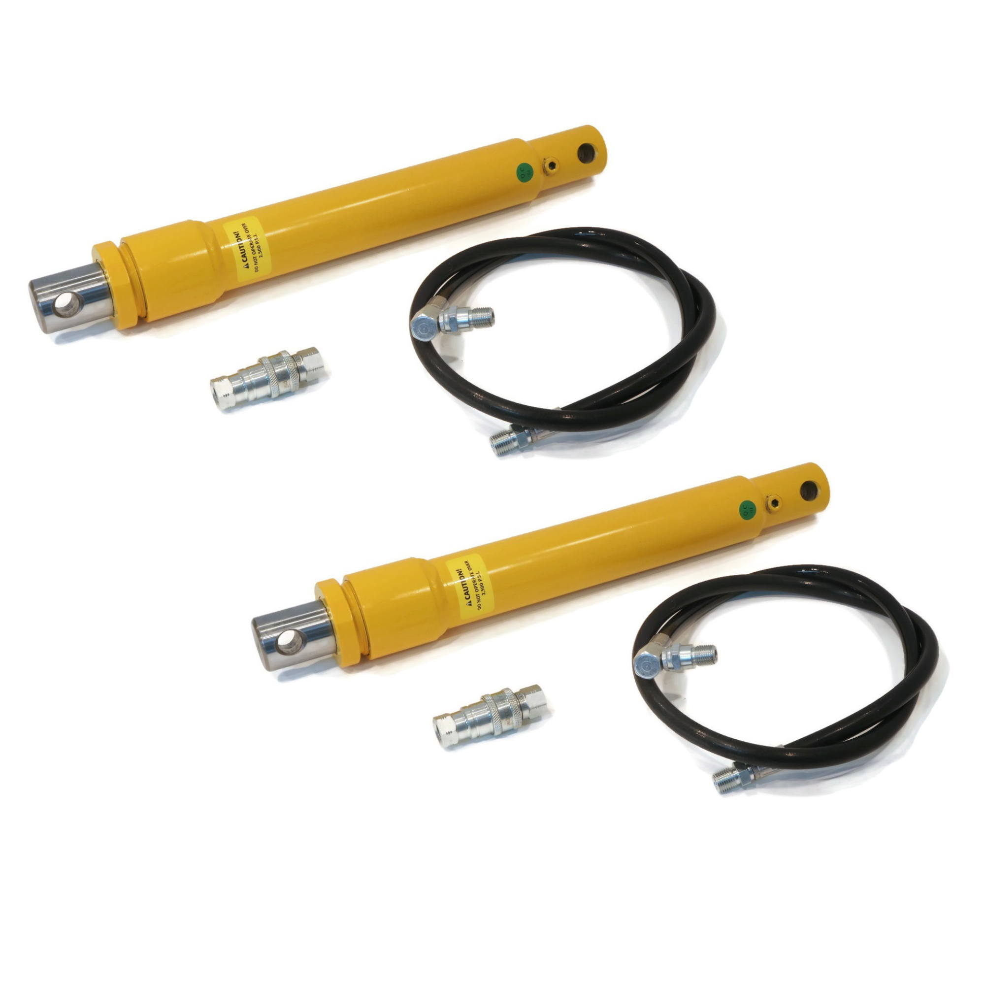 • Includes - (2) Power Angling Cylinder Rams, (2) 1/4" Hydraulic Quick Couplers, (2) 45" Angling Pressure Hoses with 90° Swivel Elbows (attached); comes as shown in the first image