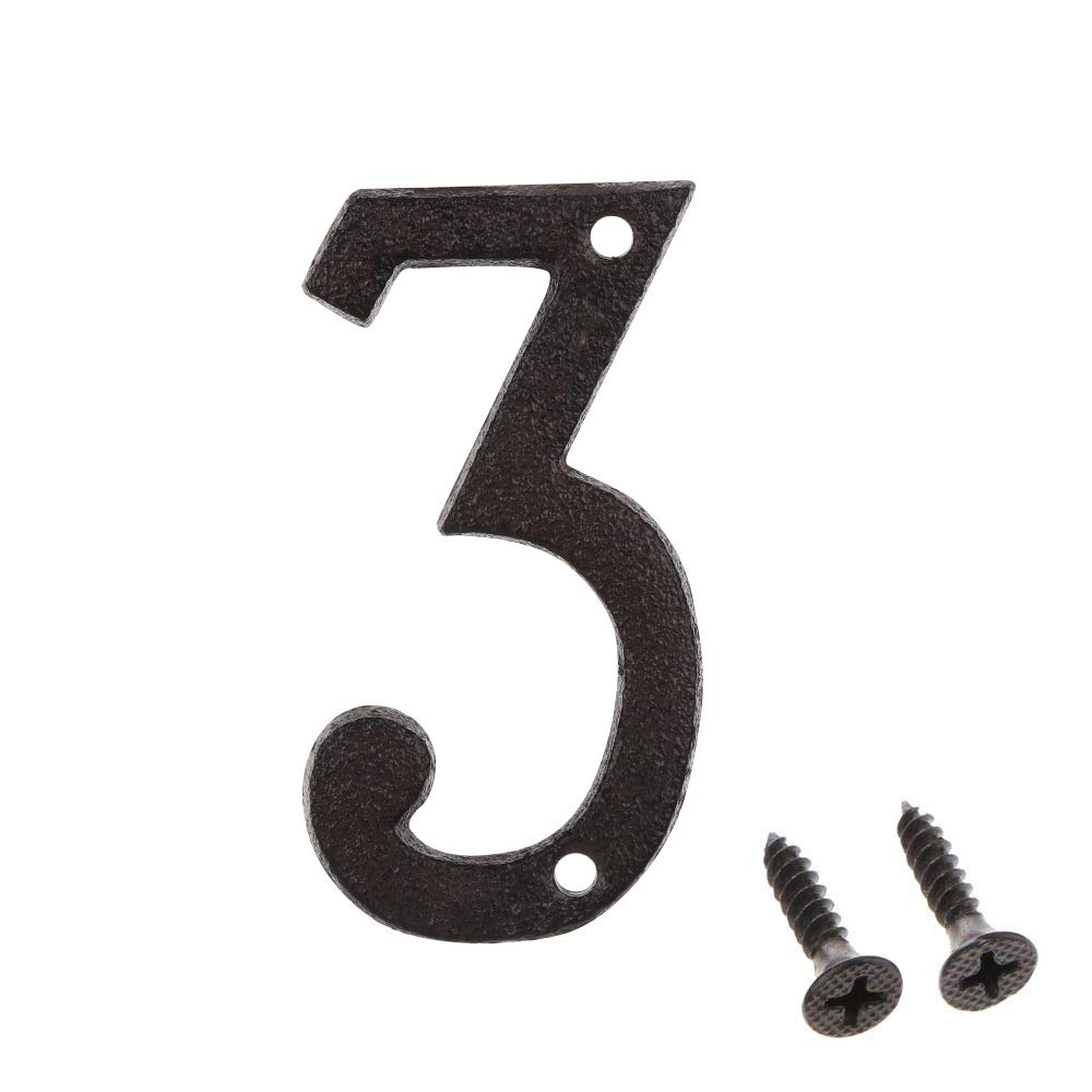 3 Inch Address Number, House Numbers for Outside, Cast Iron Metal Number Garden Door Mailbox Decor with Screws, Black Number 3