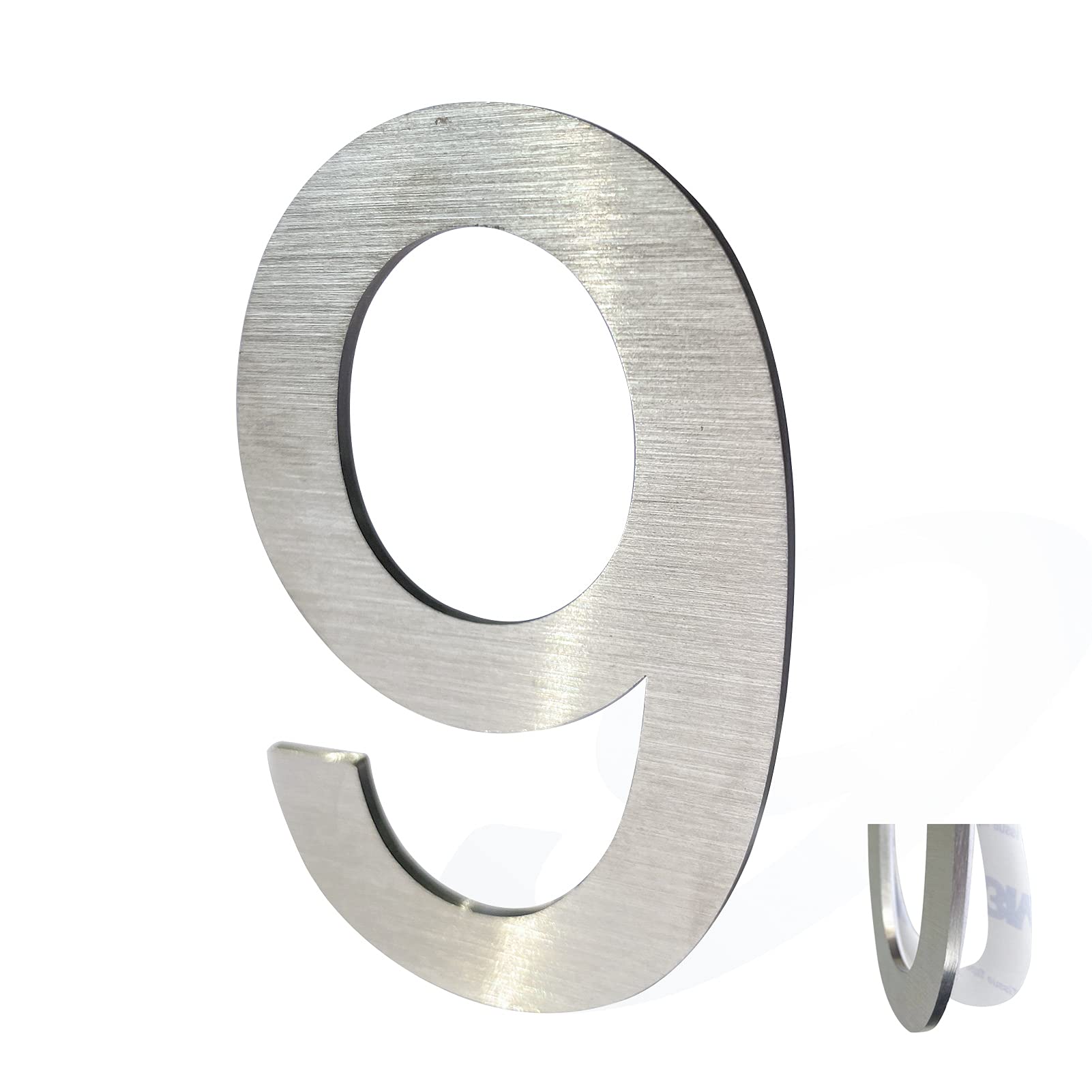 Stainless Steel House Numbers,Metal Modern House Numbers,Mailbox Decor Number,Self-adhesive house Number(3Inch-9, Silver)