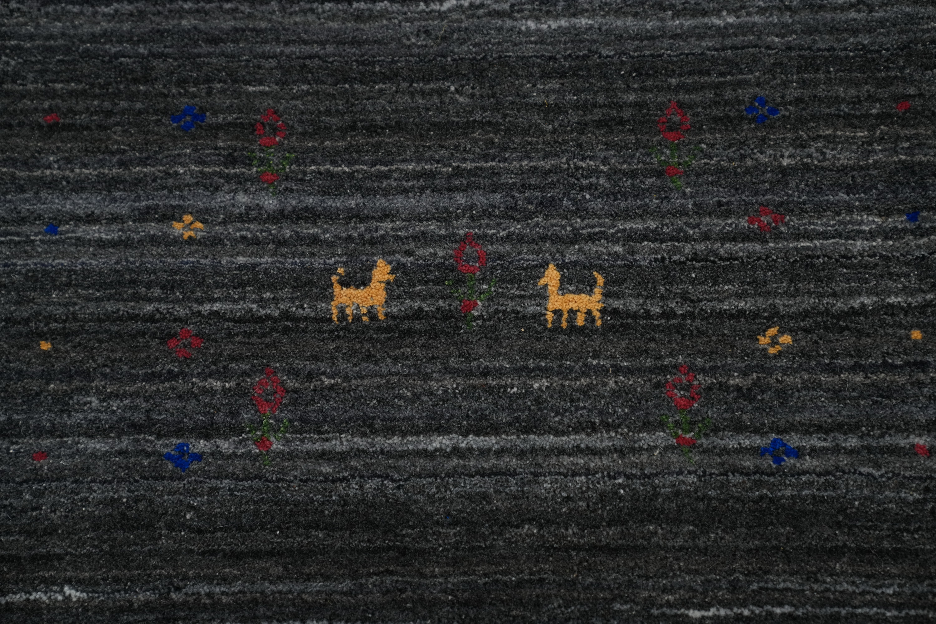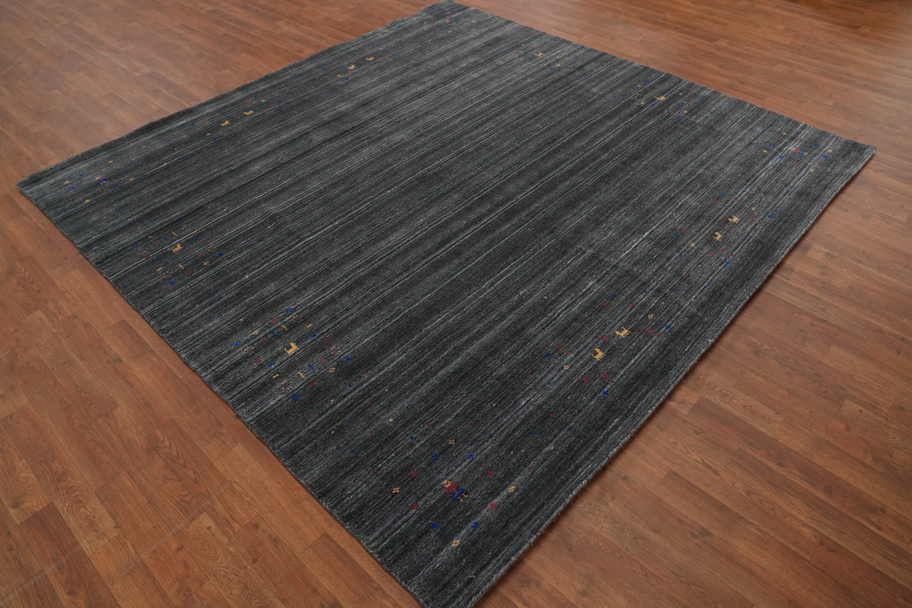 Exquisite Living Room Centerpiece Charcoal Handmade Gabbeh Rug 8x8 ft Square