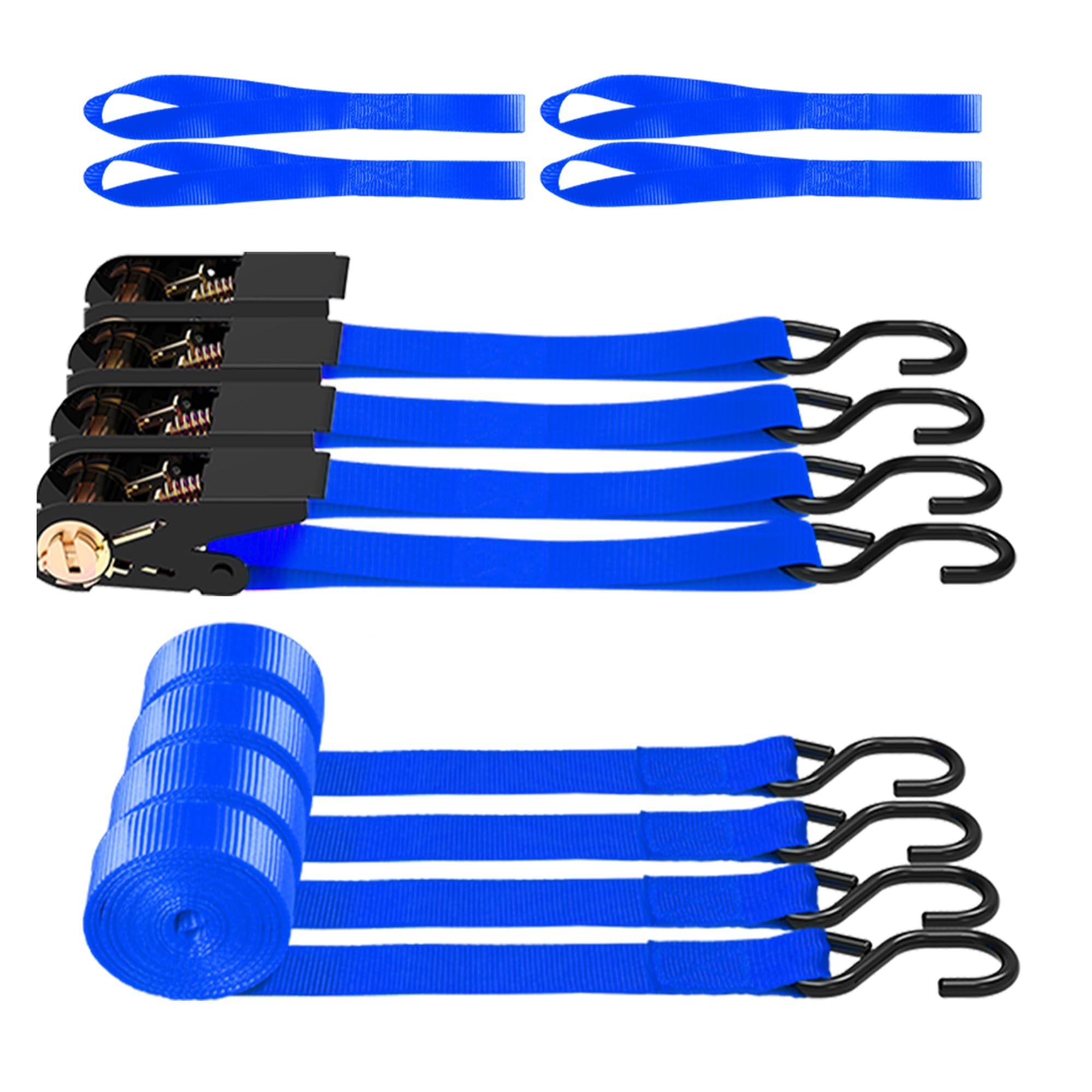 Ratchet Straps, 1500 lbs Breaking Strength - Premium 4X 15ft Tie Down Strap Set, 4X Soft Loops for Moving Appliances, Lawn Equipment, Motorcycle (Blue)