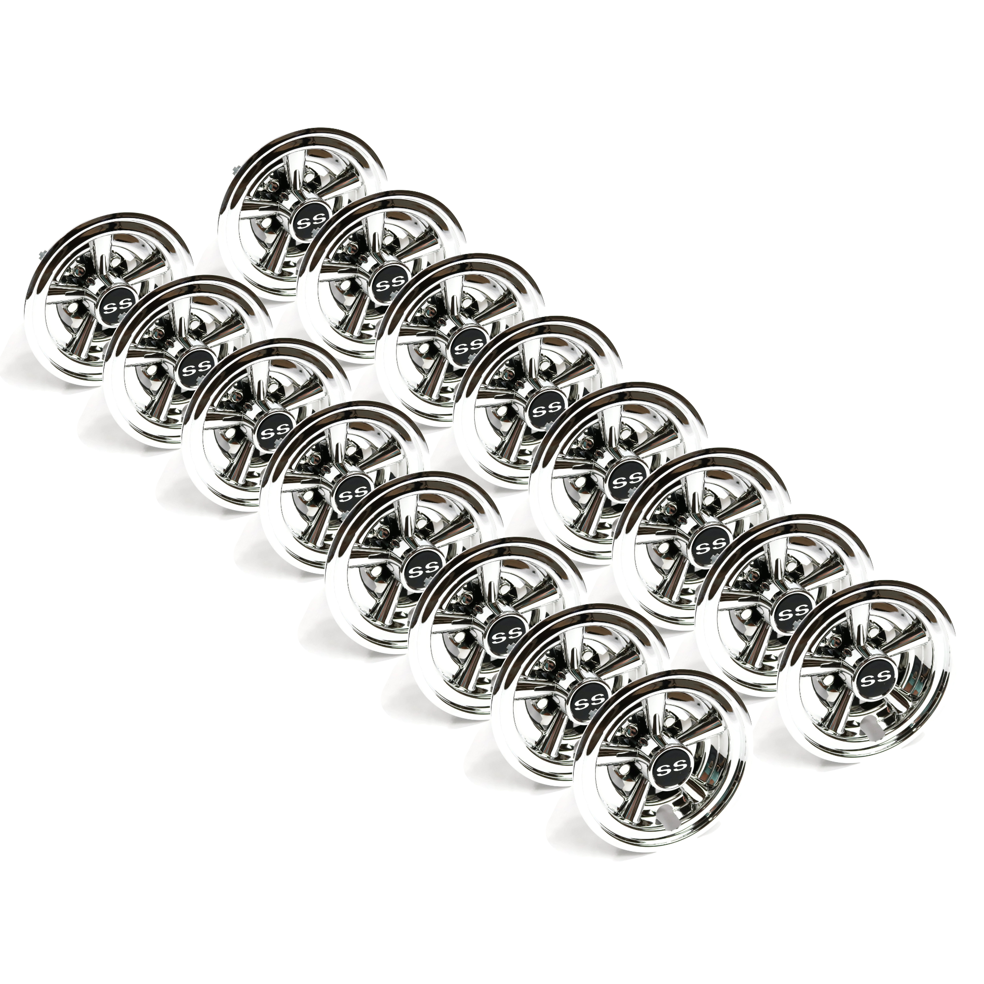 (Set of 16) 8" Chrome SS "Shift" Wheel Cover Hub Cap for Golf Cart with 8" Tires