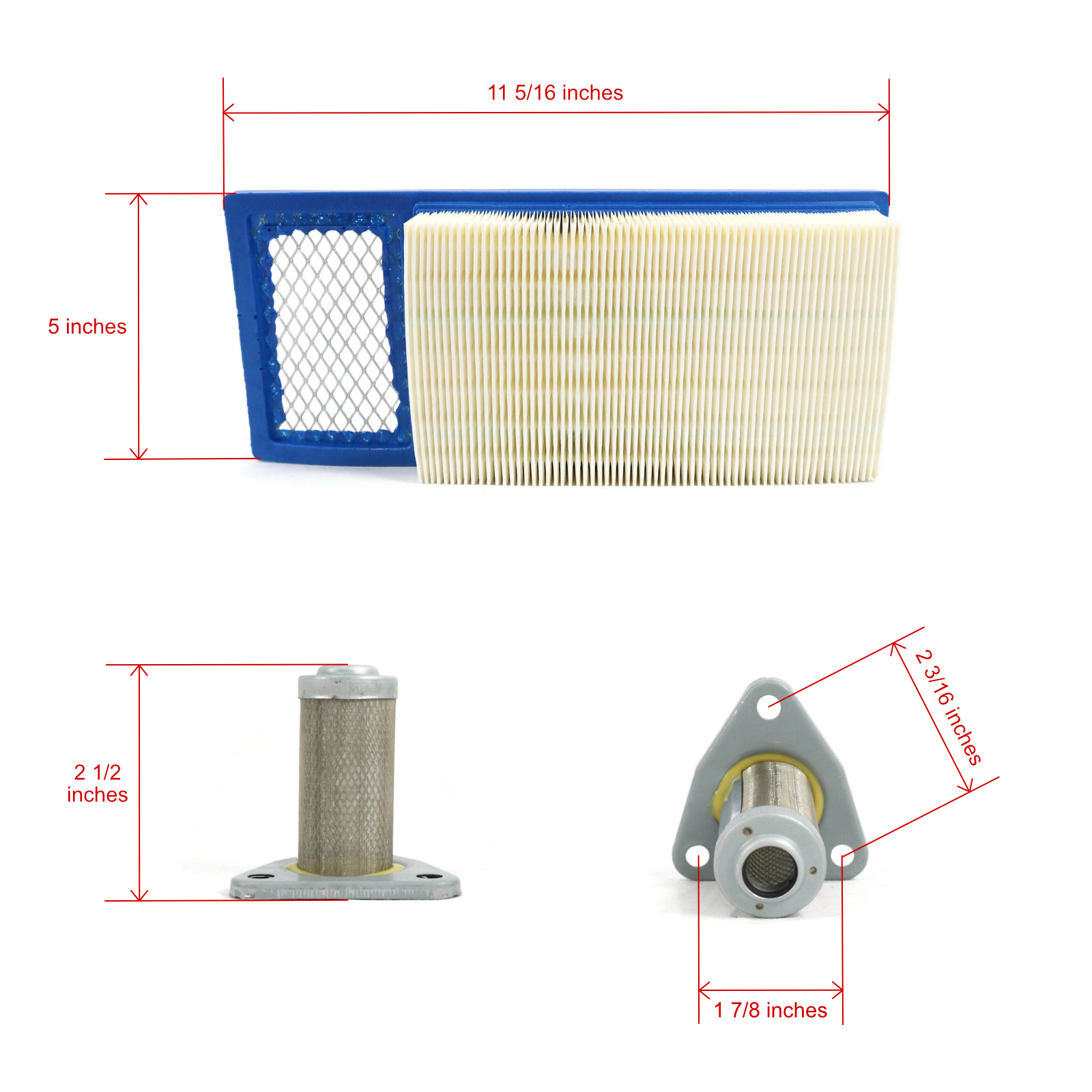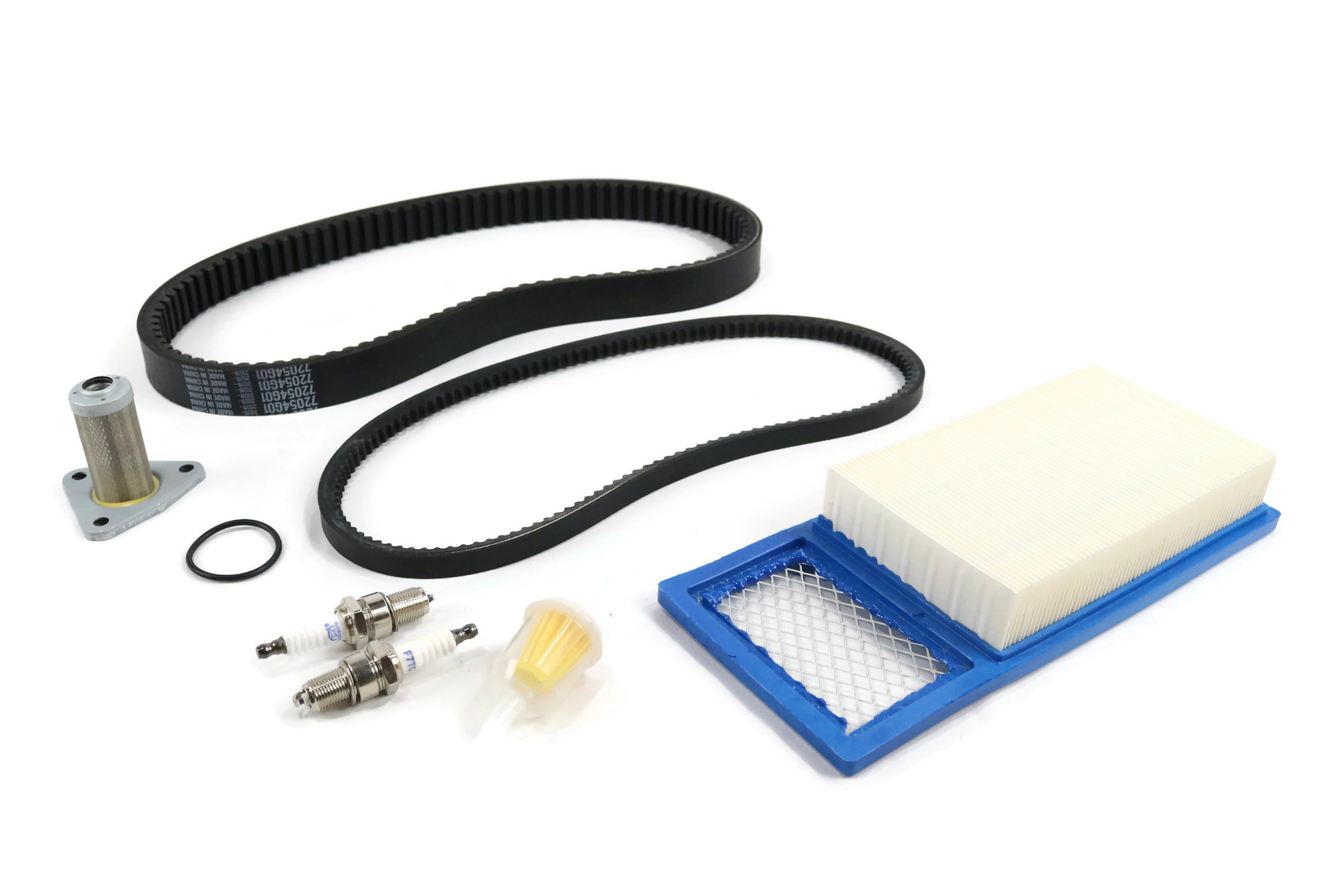 • Includes - (2) Spark Plugs, (1) Air Filter, (1) Oil Filter, (1) Fuel Filter, (2) Belts & (1) O-Ring ; comes as shown in the first image