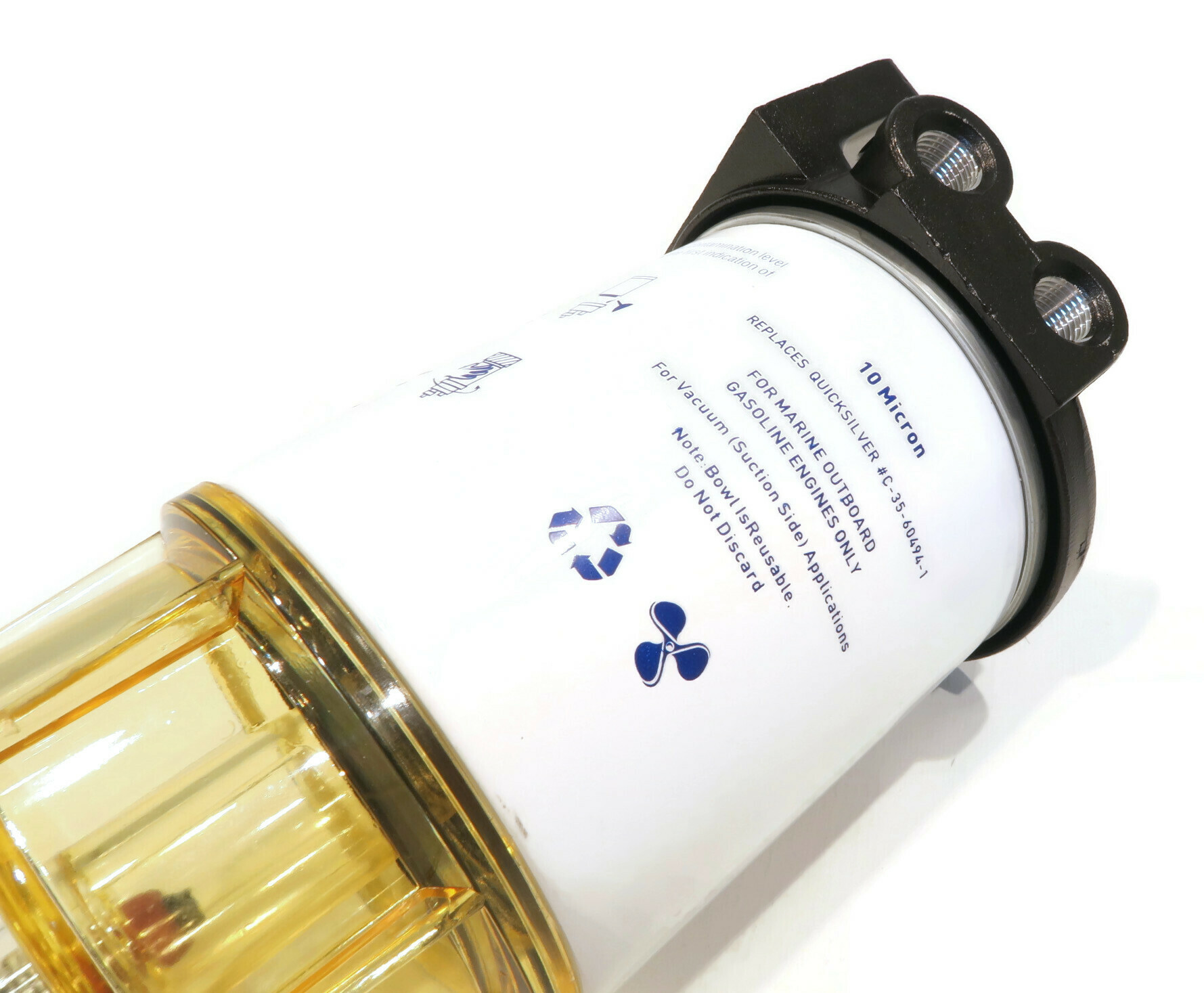 • Assembly includes reusable clear plastic bowl with self-venting drain (no sensor port) for outboard applications. Plastic collection bowls are for above deck applications only, USCG regulations require the use of flame resistant metal bowls below deck. Filter allows water to be drained and extends service life. Pipe sealant with Teflon is recommended for use on plug threads
