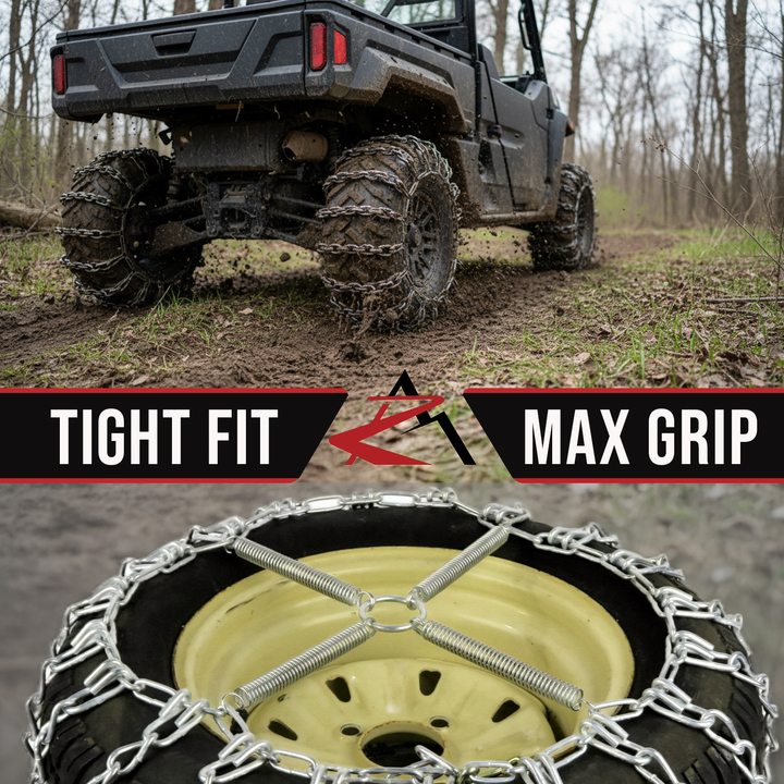 2 Link Tire Chain & Tensioners Pair for Kawasaki ATV UTV 24x10.5x12, 24x13x12